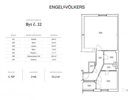 Při rezervaci a složení zálohy do 24. 12. 2025 získáte slevu z kupní ceny ve výši 400 000 Kč. Sleva je již promítnuta v inzerované ceně. Byt 2+kk o ploše 55,2 m² se nachází v podkrovní vestavbě z roku 2020, situované v posledním patře dobře udržovaného činžovního domu s výtahem. Díky jižní orientaci do klidné ulice Petra Slezáka je celý prostor příjemně prosvětlený po celý den a nabízí klid i dostatek soukromí. Dispozice je praktická a promyšlená: obývací pokoj s kuchyňským koutem tvoří hlavní obytnou zónu, ložnice je neprůchozí a disponuje vlastní šatnou a dalším úložným prostorem. Byt je ve velmi dobrém stavu, připravený k okamžitému nastěhování, bez nutnosti větších úprav. Nabízí moderní standardy a zároveň útulnou atmosféru domova – ideální volba pro jednotlivce nebo pár. Lokalita v těsné blízkosti Kaizlových sadů nabízí perfektní rovnováhu mezi městským životem a zelení. Tramvajová zastávka Urxova je vzdálena jen 4 minuty chůze, stanice metra Invalidovna zhruba 7 minut. V bezprostředním okolí nechybí kavárny, obchody ani další služby.