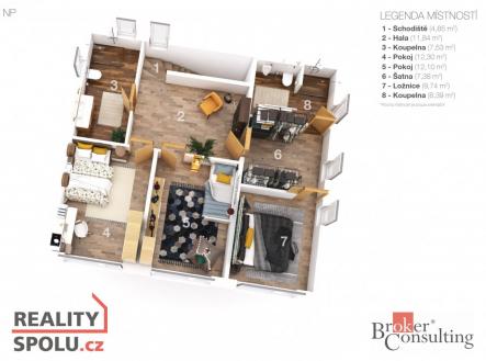 Moderní rodinný dům Praha 5 – Wiesenthalova (hranice Řeporyjí a Stodůlek) Splňte si svůj sen o dokonalém rodinném bydlení! Máme pro Vás nově postavený rodinný dům v atraktivní lokalitě Prahy 5, na rozhraní Řeporyjí a oblíbených Stodůlek. Stodůlky jsou známé svou skvělou občanskou vybaveností, výbornou dopravní dostupností a příjemnou rodinnou atmosférou. Dům je umístěn v uzavřené ulici Wiesenthalova, 3 minuty na autobusovou zastávku, 3 minuty autem do Makra a 5 minut od metra Luka. V ceně jsou dodělávky (viz dále v textu) po dohodě s novým majitelem. Dům je navíc postaven s využitím nejmodernějších stavebních materiálů a technologií, což zaručuje vysokou kvalitu a dlouhodobou hodnotu investice. Celková podlahová plocha domu je 204 m² včetně 40 m² garáže a 13 m² skladu. Dále tu máte dřevěnou terasu, která má 30 m². Promyšlená dispozice 5+kk zahrnuje velký, z části prosklený obývací pokoj s kuchyňským koutem, ze kterého se přímo dostanete bezprahovým HS-portálem na terasu. Celkem 4 ložnice zajistí komfortní bydlení i větší rodině, přičemž hlavní ložnice má vlastní koupelnu a prostor pro šatnu. V domě jsou navíc celkem 3 koupelny, z toho 2 privátní u ložnic, takže každému členu rodiny poskytují dokonalý komfort a soukromí. Unikátní součástí domu je prémiová inteligentní domácnost v hodnotě přes 750 000 Kč, díky které pohodlně ovládáte osvětlení, vytápění, rekuperaci, zabezpečení domácnosti, vstupní dveře či žaluzie přímo ze svého mobilu nebo tabletu a to i vzdáleně z druhého koutu planety. Interiér je částečně vybaven vkusným designovým nábytkem včetně moderní kuchyňské linky, sedačky a kvalitních postelí. Energeticky úsporné tepelné čerpadlo IVT se postará o příjemnou teplotu v každém ročním období, v zimě hřeje, v létě chladí. Moderní systém rekuperace zajistí zdravé a svěží prostředí uvnitř domu po celý rok. Stavba je opravdu energeticky úsporná a PENB štítek vychází na třídu A (mimořádně úsporná). Majitel navíc zrealizuje na míru kvalitní oplocení, pojezdovou bránu a krytou garáž, takže nový domov bude připraven k okamžitému a bezstarostnému nastěhování. Prostorný pozemek a zahrada o rozloze 775 m² poskytne vašim dětem bezpečný prostor pro hry a dobrodružství, zatímco vy si můžete nerušeně užívat relaxaci a společné rodinné chvíle. Pokud hledáte skutečně rodinné bydlení na prémiové adrese, je tento dům právě pro vás. Kontaktujte mě ještě dnes a přijďte se přesvědčit osobně. Těším se na vás! Jan Chundela //chundelareality cz