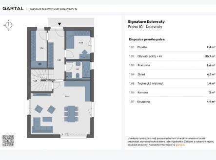Toužíte po domě, kde jen zavřete dveře a hned ucítíte, že tady jste doma? Máme pro vás nabídku, které vám do detailu splní sen o vlastním bydlení. Nabízíme k prodeji moderní rodinný dům se zahradou o dispozici 5+kk (SK15B) o celkové ploše 145 m2 v klidné lokalitě Prahy 10 na vlastním pozemku o výměře 390 m2. První, co si na svém novém domovu zamilujete, je prostor. Je ho tu tolik. Domy jsou promyšlené do posledního metru čtverečního a s dostatkem úložných řešení. Obývací pokoj je spojený s kuchyní, v ložnici na vás čeká soukromá šatna, kde si každé ráno v klidu vyberete outfit, ve kterém se budete cítit skvěle celý den, a děti půjdete postupně budit do dvou velkých samostatných pokojů. Pokud pracujete z domova určitě oceníte také útulnou pracovnu. Čím dalším vás nový dům zaujme? - čistý a nadčasový design - kvalitní materiály od prověřených dodavatelů - podlahové topení pro zdravější bydlení - úsporné a tiché tepelné čerpadlo pro vytápění a ohřev vody - velká akumulační nádrž na dešťovou vodu pro zalévání - příprava na venkovní žaluzie a fotovoltaiku. Kolovraty jsou skvěle dostupná část Prahy, kam se z centra dostanete autem nebo vlakem přibližně za 20 minut. Dopravu vám ulehčí i rychlá dostupnost “déjedničky“ a pěší dostupnost vlaku. Kolovraty jsou krásné, klidné, a přesto tu nechybí akce. Najdete tu všechno, co pro spokojený život potřebujete. Vizualizace mohou obsahovat prvky klientských změn. Pro kompletní nabídku navštivte stránku projektu, nebo nás kontaktujte.