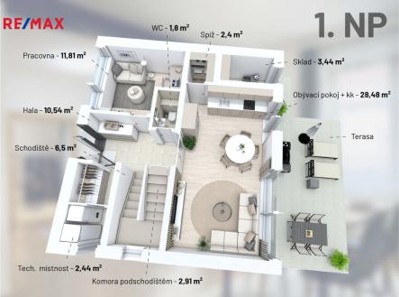Moderní, elegantní, jednoduchý tvar těchto domů nabízí vysoký standard a komfort, který si zasloužíte. Nadčasový design domu s elegantní italskou kuchyní značky Spagnol Cucine a perfektní provedení celého interiéru. K tomu parkovací stání a zahrada, která vám poskytne další pohodlí a soukromí. Moderní a velmi kvalitní provedení kuchyňské linky od italské rodinné firmy Spagnol Cucine - řada TALITA STYLING. Dveře, panely a pohledové části kuchyně jsou kombinace lamina CAOLINO + VISONE, korpusy lamino COLONIALE, panty a pojezdy BLUM (grigio antaro), integrované úchyty, sokly a profily NERO SPAZZOLATTO (anodizovaný hlíník). Pracovní deska a deska na zdi jsou z bílého konglomerovaného kamene – ALASKA BIANCO. Vestavěné spotřebiče WHIRLPOOL (mikrovlnná trouba, elektrická trouba, indukční deska, kombinovaná lednice, myčka na nádobí) + dřez FRANKE + integrovaná digestoř FABER. Dvoupodlažní rodinný dům, který splňuje kritéria moderního a úsporného bydlení. Perfektní zpracování je vidět na každém detailu. V interiéru byly použity velmi kvalitní materiály a značkové produkty. Podlahy jsou plovoucí laminátové značky EGGER v dekoru bělený dub. Ve vstupní chodbě a v obou koupelnách je položena dlažba a obklady italské značky MODA. V koupelnách jsou sprchové kouty značky RAVAK a baterie značky ROCA. Umyvadla v setu s praktickou moderní skříňkou značky JIKA. V domě jsou 2 toalety značky GEBERIT, z toho jedna samostatná v přízemí, druhá v koupelně v patře. Interiérové dveře jsou bílé, do obývacího prostoru prosklené dvoukřídlé značky SAPELI. Vytápění, chlazení a ohřev vody je řešeno pomocí tepelného čerpadla značky SAMSUNG EHS ClimateHub Split 9,0 KW 220 V včetně integrovaného zásobníku TÚV 200 l.(A+++) a podlahového vytápění v celém domě. Žádné otopné těleso vám nebrání v nádherném výhledu ze všech místností v domě. Francouzská okna zajistí maximální přísun denního osvětlení. Venkovní elektrické žaluzie naopak dostatečné zastínění od slunce či klidný spánek. Na každém pozemku je také vrtaná studna s užitkovou vodou na zalévání zahrady. Užitná plocha domu: 137,65 m2 1.NP: 70,33 m2 + 14,71 m2 terasa 2.NP: 67,32 m2 Dispozice: 5+kk Parcela: 380/13: 396 m2 Parcela: 380/15: 401 m2 - prodáno Parcela: 380/16: 430 m2 Zkolaudováno: září 2025 Městská část Prahy Královice si zachovaly svůj původní vesnický charakter, ale zároveň disponují veškerou potřebnou občanskou vybaveností. V blízkém okolí najdete mateřské a základní školy, dvě základní umělecké školy, bankomaty, poštu, restaurace, kavárny, lékárny, benzinové stanice, obchody a další služby. Přímo v Královicích si můžete zacvičit na tenisových kurtech, fotbalovém stadionu nebo si užít přírodní koupaliště Markéta. Dopravní dostupnost Královic je také velmi dobrá. Do centra Prahy se dostanete autem za pouhých 20 minut.