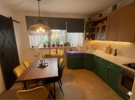 Na prodej velký byt 3+1 s lodžií v osobním vlastnictvím o velikosti 109 m2 s vlastní garáží o velikosti 17 m2 a sklepem o velikosti 6 m2 na krásném místě. Cena bytu je 13,2 mil. Kč a garáže 1,5 mil. Kč, prodávají se pouze společně. Ve fotografiích najdete i vizualizaci na případnou rekonstrukci bytu. Byt se nachází ve 2. NP cihlového domu s výtahem v klidné ulici Nad Palatou v Praze 5 Smíchov na Hřebenkách. Pěšky dojdete do zahrady Kinských a na Petřín nebo na druhou stranu na Ladronku, krásná lokalita, ideální pro rodinu, v okolí několik MŠ, ZŠ, gymnázium. Po vstupu do bytu se ocitnete v zádveří, ze kterého je vstup do haly s chodbou, odkud je samostatný vstup do všech pokojů (orientace na jih) a kuchyně (orientace na sever). Byt má dvě koupelny, jednu s vanou, druhou se sprchovým koutem a dvoje wc. Byt je po částečné rekonstrukci a je možné jej přeměnit ze 3+1 na 4+1 nebo otevřít prostor z haly do obývacího pokoje a získat tak opravdu velkorysý prostor pro obývací pokoj. V obývacím pokoji je funkční krb, vytápění bytu je vlastním plynovým kotlem. Podlahy v pokojích mají původní parkety a dlažbu. Garáž je umístěna v přízemí domu, stejně jako sklepní kóje. Nízké měsíční náklady, energetická náročnost domu B, měsíční poplatky Společenství vlastníků 5.800,-Kč. Koupi nemovitosti můžete financovat hypotečním úvěrem, s jehož vyřízením Vám rádi pomůžeme. Pro bližší informace nebo sjednání prohlídky prosím kontaktujte makléřku.