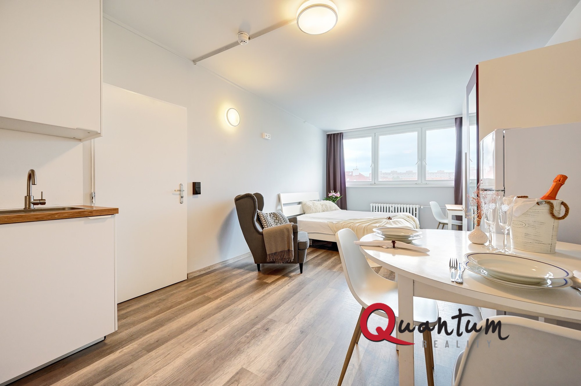 Nabízíme k pronájmu světlý a moderní byt 1+KK o velikosti 31,8 m², nacházející se ve 3. nadzemním podlaží domu v žádané lokalitě Praha 8 - Střížkov, pouhých 8 min chůze od metra. Dům i byt prošel kompletní rekonstrukcí a je připraven k nastěhování od 11.3.26. Dispozice bytu: prostorný obývací pokoj s kuchyňským koutem, koupelna se sprchovým koutem a WC. Byt dále disponuje praktickou komorou. Vybavení bytu - kuchyňská linka se spotřebiči – myčka, sklokeramická varná deska, el. trouba, volně stojící lednice, a dále jídelní stůl, 4 jídelní židle, komoda, postel, křeslo. Dům nabízí nadstandardní vybavení, jako je 24/7 recepce a ostraha, fitness centrum a komunální prádelna. V domě je výtah. Lokalita poskytuje veškerou občanskou vybavenost a výbornou dopravní dostupnost – MHD je v docházkové vzdálenosti. Náklady na bydlení: Nájemné: 15700 Kč Poplatky vč. teplé a studené vody a vytápění činí 3469 Kč + elektřina v bytě převodem na nájemníka Kauce 30000 Kč Provize 20000 Kč + DPH Pro více informací a domluvení prohlídky nás neváhejte kontaktovat.