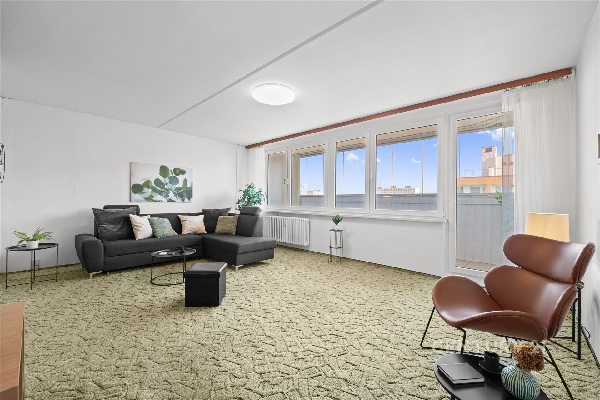 Nabízíme k prodeji pěkný byt 2+kk s lodžiemi a výhledem na město, 74m2, Praha 10 Vršovice