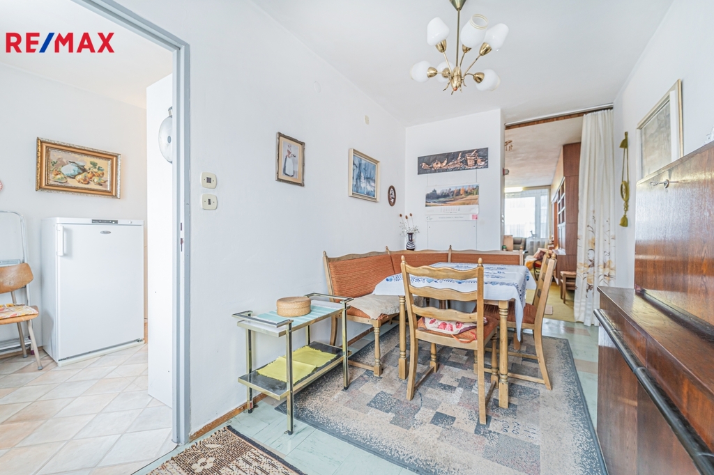 Nabízíme k prodeji řadový rodinný dům o dispozici 5+2 na adrese Březová, Praha 8 – Kobylisy. Dům je vhodný i pro dvougenerační bydlení a nabízí klidné rodinné zázemí v jedné z nejvyhledávanějších lokalit Prahy 8. Dispozice domu: Přízemí: Garáž (13,1 m²), předsíň (6 m²), chodba (3,6 m²), koupelna s WC (5,2 m²), úložný prostor (3,1 m²) a ateliér s kuchyní (19,1 m²) se vstupem na zadní zahradu o velikosti 32 m²; přední část pozemku má 24 m². 1. patro: Prostorný obývací pokoj (27,5 m²), samostatná kuchyň (10,5 m²), jídelna (10,1 m²) a schodiště do 2. patra. 2. patro: Ložnice (15,4 m²), dva pokoje (každý 9,2 m²), chodba (9,7 m²), koupelna s vanou (2,2 m²), samostatné WC (1,4 m²) a půda (54,7 m²).Celková obytná plocha: 145 m² (včetně garáže). Parkování je zajištěno garáží a druhým parkovacím stáním na pozemku. Technické informace Dům je napojen na vodu, kanalizaci, elektřinu i plyn. Vytápění a ohřev TUV zajišťuje kondenzační plynový kotel. Konstrukce a výstavba Rezidenční zástavba v této části Kobylis vznikala kolem roku 1970 - 1980. V okolních domech se běžně nachází tyto konstrukční prvky: • nosná konstrukce: železobetonové panely, • stropy: železobetonové prefabrikované dílce, • příčky: lehké příčkovky (pórobeton, duté cihly). Lokalita – Kobylisy, Praha 8 Březová ulice nabízí klidné rodinné bydlení s kompletní občanskou vybaveností v docházkové vzdálenosti – obchody, restaurace, školy, školky, služby, zeleň. Výborná dopravní dostupnost zajišťuje pohodlné spojení po celé Praze. • Tramvajová zastávka Sídliště Ďáblice – 5 minut chůze. • Autobusová zastávka Ďáblický hřbitov – jen 3 minuty, autobus jede na metro C – Ládví cca 5 minut. • Metro C – Ládví v docházkové vzdálenosti. • Rychlé napojení autem na Libereckou a Městský okruh.