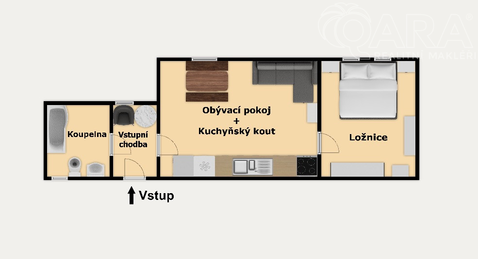 Nabízíme k pronájmu krásný byt o dispozici 2 +kk, o celkové ploše 49m2