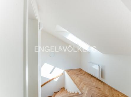 Podkrovní byt 2+kk se zachovalými dřevěnými trámy ve 3. nadzemním podlaží historického činžovního domu. Obývací pokoj je spojen s kuchyňským koutem, který disponuje všemi spotřebiči. Celý byt je orientovaný do vnitrobloku a jsou zde nová okna s trojskly, díky tomu je byt velmi tichý a klidný. Byt se dále skládá ze vstupní chodby, koupelny se sprchou a praktické komory vedle kuchyně. Po dohodě je možné byt dovybavit šatními skříněmi. Vysoký standard provedení bytu zahrnuje dubové parkety, klimatizační jednotky, podlahové topení v koupelně a ovládání světel a topení přes aplikaci. Velkou výhodou je lokalita domu, kde budete mít po ruce veškerou hromadnou dopravu a stejně tak i občanskou vybavenost. V okolí domu si lze pronajmout parkovací stání.
