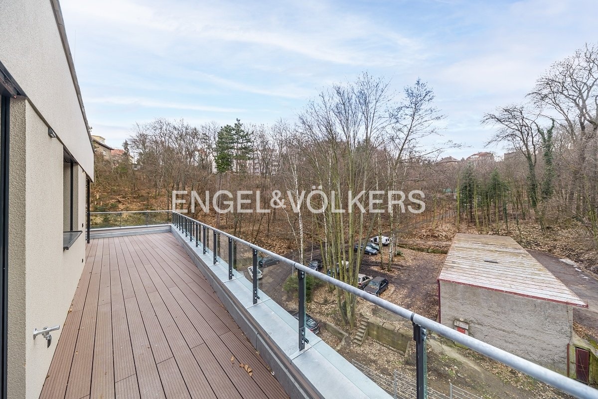 Nadstandardně provedený byt v nejvyšším patře novostavby v klidné části Smíchova