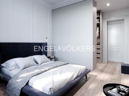 Secesní činžovní dům po kompletní rekonstrukci, přímo na náměstí Jiřího z Poděbrad. Reprezentativní společné prostory domu. Na rekonstrukci bytu byly použity kvalitní materiály a sanitární vybavení, na podlahách jsou položeny masivní dřevěné podlahy. Dominantou bytu je obývací pokoj s kuchyňským koutem. Kompletně zařízená kuchyň je vybavená kvalitními spotřebiči. Jedna ložnice disponuje vlastní šatnou a druhá en-suite koupelnou. Druhá koupelna je přístupná z prostorné haly a taktéž extra samostatná toaleta. Vybavení dále zahrnuje vestavěné úložné prostory, pračku a sušičku, klimatizace je samozřejmostí. Další vybavení lze zařídit po domluvě za vyšší nájemné. Jedno garážové stání poblíž domu je zahrnuto v ceně nájmu. Domovní poplatky 2 000 Kč / osoba + převod energií.
