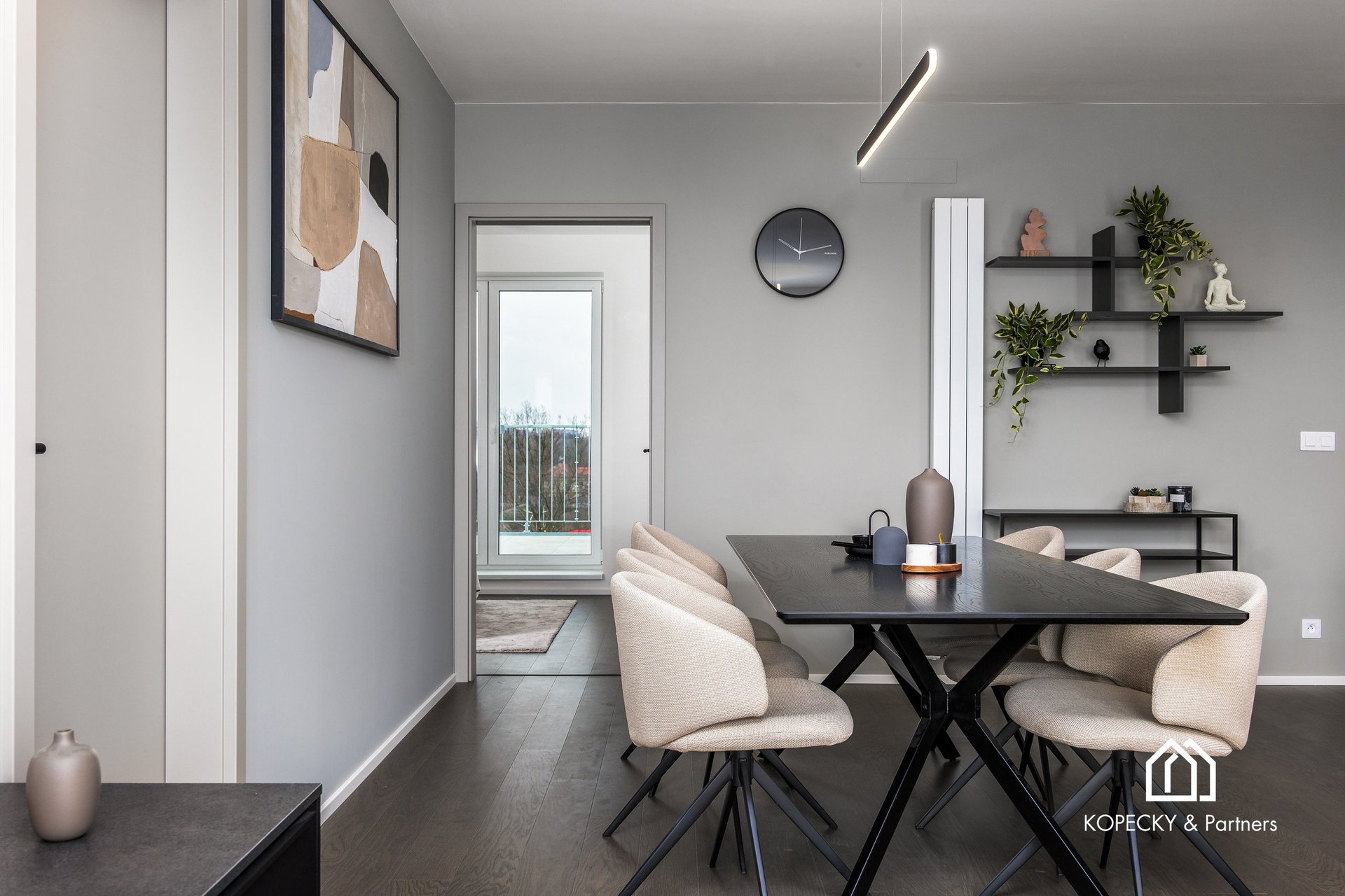 Hledáte moderní a komfortní bydlení v klidné části Prahy, kde můžete mít přírodu na dosah a přitom snadno dojíždět do centra? Tento prostorný byt 5+kk je součástí novostavby luxusního rezidenčního projektu v Hostavici, jedné z nejoblíbenějších lokalit Prahy 9. Byt o užitné ploše 119 m² je navržen tak, aby splňoval náročné požadavky na pohodlí i praktičnost. Hlavní obytnou část tvoří světlý obývací pokoj s kuchyňským koutem o rozloze téměř 30 m², který je díky velkým francouzským oknům příjemně prosvětlen a nabízí dostatek prostoru pro rodinné posezení nebo setkání s přáteli. Nechybí zde tři prostorné ložnice a další samostatná místnost, kterou lze využít jako pracovnu, dětský pokoj či pokoj pro hosty. Maximální komfort zajišťují dvě koupelny, z nichž jedna je vybavena vanou a druhá sprchovým koutem. Veškeré obytné prostory pokrývají kvalitní plovoucí podlahy s voděodolnou úpravou, zatímco koupelny a toalety zdobí velkoformátové obklady a dlažba. Samozřejmostí je i vysoce kvalitní sanita, která podtrhuje nadstandardní úroveň vybavení. Pro ukládání všeho potřebného slouží prostorná šatna s dostatečně dimenzovanými úložnými možnostmi. Velkou předností bytu je terasa o velikosti 34 m², ideální pro venkovní stolování, odpočinek po náročném dni nebo příjemná setkání během letních večerů. Důležitou součástí moderního technického zázemí je rekuperace vzduchu, která zaručuje optimální cirkulaci a snižuje energetické náklady. Hostavice je vyhledávanou lokalitou díky své přátelské atmosféře a bohaté občanské vybavenosti. V pěší dostupnosti se nacházejí školy, školky, obchody, restaurace, zdravotnická zařízení i zastávky MHD. Milovníci přírody ocení okolní parky, cyklostezky a četné možnosti pro sport či relaxaci na čerstvém vzduchu. Byt spadá do energetické třídy B, což výrazně snižuje provozní náklady. K dispozici je také možnost dokoupit parkovací stání a sklepní kóji. Tato nemovitost tak představuje nejen ideální rodinné bydlení, ale i zajímavou investiční příležitost s potenciálem budoucího zhodnocení. V případě zájmu o více informací či osobní prohlídku nás neváhejte kontaktovat. Přijďte se přesvědčit o jedinečnosti tohoto bytu a objevte svůj nový domov v Hostavici.
