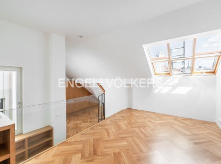 K okamžitému pronájmu je připravený nový velkorysý nezařízený a plně klimatizovaný podkrovní byt 2+kk, který se nachází v šestém nadzemním podlaží zrekonstruovaného činžovního domu s výtahem. Praktická dispozice bytu, kdy se ze vstupní předsíně s vestavěnou skříní vchází do jednotlivých místností. Prostorný obývací pokoj s kuchyní na míru vybavenou všemi spotřebiči je orientovaný do ulice Maiselova s výhledy na synagogu. Ložnice je orientovaná do klidného vnitrobloku. Koupelna se sprchovým koutem a toaletou. Poplatky činí 4 000 Kč a elektřina bude převedena na nájemce. Nájemce je srozuměn s provizí ve výši 1 měsíčního nájmu + DPH.