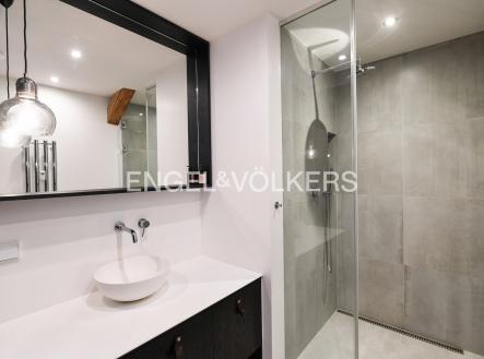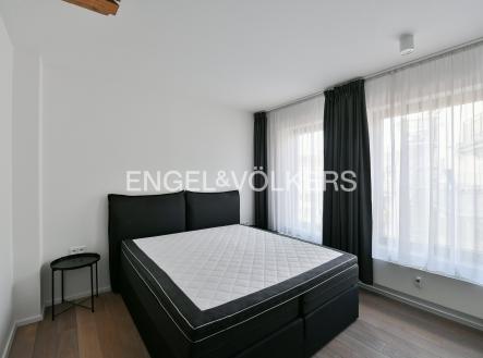 Historický činžovní dům po kompletní rekonstrukci v jedné z nejžádanějších lokalit v Praze, přímo na náměstí Jiřího z Poděbrad. Reprezentativní společné prostory domu a výtah až do posledního patra, ve kterém je tento skvostný byt situován. Rekonstrukce dbala na zachování všech originálních dekoračních i architektonických prvků domu. Na rekonstrukci bytu byly použity kvalitní obklady a sanitární vybavení, na podlahách jsou položeny masivní dřevěné podlahy a všechny místnosti bytu jsou klimatizovány. Dominantou bytu je prostorný světlý obývací pokoj orientovaný směrem na náměstí, jenž disponuje kompletně zařízenou kuchyní vybavenou kvalitními spotřebiči včetně vinotéky. Obě ložnice jsou pak orientovány do klidného vnitrobloku a jedna z nich disponuje vlastní šatnou a en-suite koupelnou. Menší ložnice má rovněž svoji vlastní vestavěnou šatnu. V bytě jsou celkem dvě koupelny, jedna en-suite, druhá přístupná ze vstupní haly. Vybavení dále zahrnuje četné vestavěné úložné prostory, pračku a sušičku, případně je zde možnost doplnění nábytku. K bytu náleží parkovací stání v hlídané podzemní garáži blízkého parkovacího komplexu.