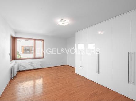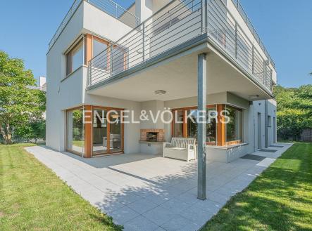K okamžitému pronájmu je připravený nadstandardní rodinný dům v klidné lokalitě Jinonic. Prostorný dům s pěti ložnicemi, čtyřmi koupelnami, obývacím pokojem s kuchyní a třemi terasami. Vstupní patro slouží jako společenská část s velkorysým obývacím pokojem s krbem a plně zařízenou kuchyňskou linkou ve vysokém standardu. Ve druhém patře jsou čtyři prostorné ložnice a dvě koupelny. Hlavní ložnice má vlastní šatnu, vstup na terasu a koupelnu. Ve třetím patře se nachází pátá ložnice také s vlastní koupelnou a ohromnou terasou s jedinečnými výhledy. V suterénu domu je technická místnost a tři další místnosti poskytující spousty úložných možností. Kolem domu je příjemná a tichá zahrada. Mezi vybavení patří elektrické venkovní žaluzie, centrální vysavač, klimatizace a automatická závlaha zahrady, garáž pro dvě auta a další parkování na pozemku. V těsné blízkosti je Německá škola a v pěší vzdálenosti i metro Nové Butovice.