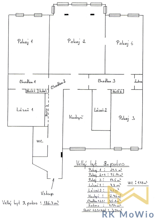 K pronájmu nabízíme klasický byt č. 5 bez nábytku, o dispozici 4+1 s podlahovou plochou 186,7 m2, situovaný ve 3. patře (4. nadzemní podlaží) secesní budovy s výtahem, ve vyhledávané lokalitě Senovážné náměstí na Praze 1 - Nové Město. Půdorys bytové jednotky nabízí vstupní chodbu, vzdušný obývací pokoj s jídelním prostorem, oddělenou kuchyni, 3 ložnice, 2 koupelny, toaletu pro hosty a šatnu. Vybavení bytu: kuchyňská linka (včetně lednice s mrazákem, sklokeramické varné desky, digestoře, myčky a elektrické trouby), vestavěné skříně, pračka, příprava pro vysokorychlostní internet, dřevěné parkety a dlažba. Nemovitost se nachází ve vyhledávané lokalitě Prahy 1 s veškerou občanskou vybaveností v krátké vzdálenosti - restaurace (Takumi, Bistro U Býka, Restaurace Obecní dům), kavárny (Kavárna Kampus, Sicily café, Zrno zrnko), supermarkety (Billa, Albert) a lokální obchody, úřady, bankomaty a další. Výhodou je téměř bezprostřední poloha od Slovanského domu (multikino Cinema City) a obchodního centra Palladium (např. Mango, The North Face, Gap, Karl Lagerfeld, Swarovski, Foot Locker...). Výborná dopravní dostupnost - stanice metra B - Náměstí Republiky, přestupní stanice metra A a B - Můstek. Nájemné na vyžádání v RK, poplatky 8.000,- Kč/měsíc (domovní služby a služby za byt), převod elektřiny a plynu na nájemce, parkovací stání na dvoře za 5.000,- Kč/měsíc. Požadovaná jistota (kauce) ve výši dvou měsíčních nájmů. Minimální délka pronájmu 1 rok, ubytování formou Airbnb či spolubydlení nelze realizovat. Dle vyhlášky 78/2013 Sb. uvádíme třídu energetické náročnosti budovy G.