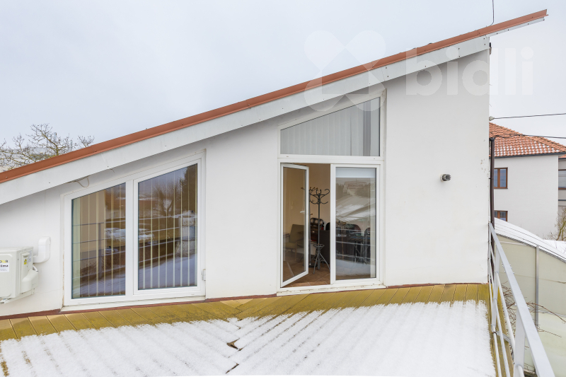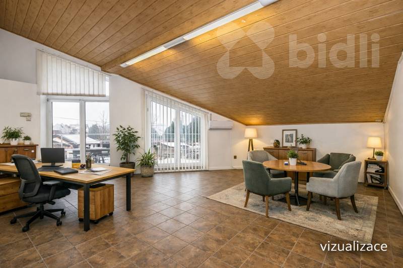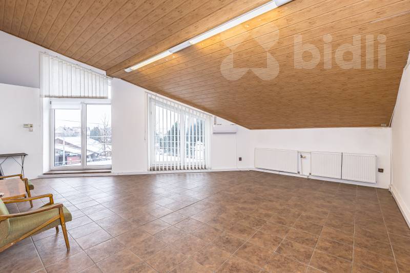 K pronájmu nabízíme nebytové prostory o celkové ploše 246 m2, v samostatné budově situované v klidné části Prahy 4 Modřan. Objekt má dvě nadzemní podlaží o výměrách 120 m2 a 126 m2, která mohou fungovat samostatně nebo jako jeden celek. Prostory nejsou určeny k bydlení a je preferován administrativní provoz. Přízemí tvoří dvě velkorysé kancelářské místnosti o rozloze 51 m2 a 32 m2, které doplňuje kuchyňka, koupelna s WC, samostatný sklad a serverovna. Dispozice nabízí praktické zázemí pro každodenní chod firmy a dostatek prostoru jak pro pracovní místa, tak technické vybavení. Horní podlaží je rozděleno do tří samostatných místností o velikosti 14 m2 se vstupem na terasu, 33 m2 a 36 m2. Dále je zde k dispozici sklad, kuchyňka a koupelna s WC. Na toto patro navazuje terasa o přibližné výměře 18 m2, která může sloužit jako příjemné místo pro přestávky zaměstnanců nebo neformální pracovní setkání. Objekt je nabízen bez nábytku, na podlahách jsou koberce a dlažba. Vytápění i ohřev vody zajišťuje plynový kotel. Výhodou je také sklad přístupný přímo z pozemku přes velká zatahovací vrata, což ocení zejména společnosti s potřebou zásobování, archivace nebo skladování materiálu. Parkování je možné v přilehlé ulici, kde se nenachází zóna placeného stání. Lokalita nabízí klidné pracovní prostředí a zároveň dobrou dostupnost do širšího centra Prahy i na hlavní dopravní tahy. Cena 39.000 Kč + poplatky (voda + energie).