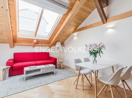 Netradičně řešený byt se skvělou atmosférou a zajímavým dispozičním řešením. Byt se nachází v pátém nadzemním podlaží činžovního domu po kompletní rekonstrukci nejvyššího standardu. Zachované štukové stropy, dřevěné obložení, zámečnické prvky a další specifické prvky pro tento dům dohromady tvoří jedinečné umělecké dílo. K rekonstrukci byly použity výhradně kvalitní materiály. Tento jedinečný apartmán může být díky svému dispozičnímu řešení jednoduše změněný z jednopokojového na dvoupokojový byt. Srdce tohoto bytu tvoří útulný obývací pokoj s originálně řešeným střešním oknem, který je propojený s kuchyní a galerií. Galerie v patře je zařízená dvojlůžkem a může fungovat jako regulérní ložnice. Na míru vyrobená italská kuchyně s veškerými spotřebiči nabízí veškerý komfort moderního vaření. Samostatná ložnice má unikátní atmosféru. Moderní koupelna je vybavena sprchovým koutem, umyvadlem, toaletou a bidetem. Celý byt je zařízený kvalitním italským nábytkem. Úložné prostory jsou řešené formou vestavěných skříní. Celoroční komfort nabízí podlahové topení v celém bytě a klimatizace. Přímo v domě se nachází kompletně vybavená posilovna přístupná všem nájemcům. V podzemních garážích je možnost si pronajmout parkovací stání. Centrální lokalita nabízí fantastickou dopravní dostupnost a nespočetné kulturní a volnočasové aktivity. Cena nájmu je uvedená bez poplatků. Majitel nesouhlasí s podpronájmem třetím osobám.