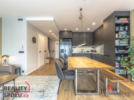 Exklusivně nabízíme k prodeji moderní rodinný dům s promyšlenou dispozicí, v nadstandardním provedením a velmi nízkými provozními náklady. Dům byl kolaudován na jaře roku 2022 a je zařazen do energetické třídy PENB A. Dominantou domu je prostorný obývací pokoj s kuchyňským koutem a jídelní částí, který je díky velkoformátovým oknům krásně prosvětlený a má přímý vstup na krytou terasu. Terasa je zastřešena kvalitní hliníkovou pergolou s prosklením, umožňující komfortní využití po celý rok, a plynule navazuje na zahradu. Zahrada byla realizována na klíč renomovanou zahradní architektkou, s důrazem na estetiku, funkčnost a soukromí. Celkový koncept venkovních prostor přirozeně rozšiřuje obytnou část domu. Kuchyně je vybavena kvalitními vestavěnými spotřebiči a nabízí dostatek úložných prostor. Dům disponuje třemi samostatnými pokoji - ložnice, 2x dětské pokoje + pracovna. Dům má dvě koupelny – v přízemí se nachází koupelna se sprchovým koutem, toaletou a umyvadlem, v patře pak koupelna se sprchovým koutem, vanou a umyvadlem. Toaleta je řešena samostatně. Koupelny jsou v moderním stylu s kvalitní sanitou, samozřejmostí jsou vestavěné skříně a praktické úložné prostory. V celém domě je instalováno podlahové vytápění, které zajišťuje plynový kotel sloužící zároveň k ohřevu teplé vody. Součástí domu je rekuperace, provedena příprava na klimatizaci a přívod třífázové elektřiny (380 V), vhodný pro instalaci nabíjení elektromobilu. Použité materiály a technologie odpovídají vysokým nárokům na komfortní a úsporné bydlení. K domu náleží garáž a další dvě parkovací místa na vlastním pozemku. Lokalita Praha 8 – Dolní Chabry nabízí kompletní občanskou vybavenost, základní i mateřskou školu v docházkové vzdálenosti do 5 minut, a zároveň velmi dobrou dopravní dostupnost jak MHD, tak automobilem. Dům je ideální volbou pro klienty hledající moderní, kvalitní a energeticky úsporné bydlení v klidné části Prahy, bez nutnosti dalších investic.