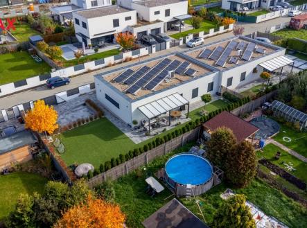 Hledáte moderní a pohodlné bydlení (bungalov) v klidné části Prahy s výbornou dostupností i přírodou na dosah? Tento rodinný dům 4+kk o celkové užitné ploše 155 m² na pozemku 517 m² splní všechna vaše očekávání. Novostavba z roku 2021 nabízí promyšlené dispoziční řešení, kvalitní provedení a příjemné rodinné prostředí v žádané lokalitě Praha – Koloděje. Dominantou domu je světlý obývací pokoj s kuchyní a přímým vstupem na terasu. K dispozici jsou tři samostatné ložnice, koupelna s vanou i sprchovým koutem, dvě samostatné toalety, praktická spíž a technická místnost. Dům je vybaven moderními technologiemi – elektrické podlahové vytápěním-El. rohože (každá místnost má svůj termostat), klimatizací, fotovoltaikou s úložištěm, venkovními žaluziemi a chytrou domácností s dálkovým ovládáním vstupu, topení i alarmu. Samozřejmostí je kamerový systém, brána na dálkové ovládání a vestavěné úložné prostory. Díky energeticky úspornému provozu se aktuální náklady na elektřinu a vytápění pohybují kolem 2 700 Kč měsíčně. Zahrada o velikosti 360 m² je navržena s důrazem na soukromí a nízké náklady na údržbu. Najdete zde umělý trávník, retenční nádrž na dešťovou vodu (3 m³), pergolu s posezením a grilem – ideální místo pro odpočinek nebo setkání s přáteli. Parkování je zajištěno dvěma stáními na vlastním pozemku, další možnosti parkování jsou v klidné slepé ulici před domem. Koloděje jsou vyhledávanou městskou částí díky své zeleni, bezpečnému prostředí a rodinné atmosféře. V blízkosti se nachází Kolodějská obora, lesy, rybníky i potok Rokytka – ideální pro procházky, běh, cyklistiku nebo relaxaci v přírodě. V místě je kompletní občanská vybavenost – mateřská i základní škola, pizzerie, vinotéka, řeznictví s koloniálem, květinářství, kadeřnictví, městský úřad a sportovní areály (tenisové kurty, fotbal, Sokol, venkovní posilovna). Dopravní spojení je výborné – autobusové linky směřují na metro Skalka nebo Letňany, vlakové spojení do centra zajišťují stanice Klánovice a Uhříněves. Do centra Prahy se dostanete během 20–30 minut. Lokalitu dále zatraktivní připravovaný pražský okruh, který zrychlí dopravu a zároveň odvede tranzitní provoz mimo obec. Současná hypotéka se splatí z prodeje, takže je možné dům bez problémů financovat úvěrem. Tento dům představuje ideální kombinaci moderního bydlení, úsporného provozu, klidu a výborné dostupnosti – perfektní volba pro rodinu, která hledá komfortní zázemí v Praze. Těším se na Váš telefonát a potkáme se na společné prohlídce.