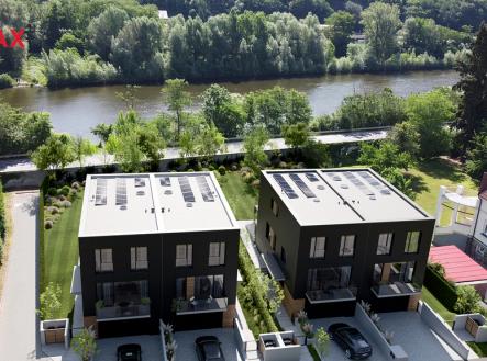 Projekt nabízí 4 nízkoenergetické a technologicky pokročilé stavby zasazené do prostředí prvorepublikových vil. Lokalita na Zbraslavi, obklopená zelenými kopci a tokem Vltavy, poskytuje moderní architektuře harmonický kontext s benefitem rozvinuté infrastruktury v původní zástavbě. Hlavní parametry: Dispozice: 5+kk Užitná plocha: 211 m² 2 Terasy a balkon: 50 m² Pozemek: 400 m² s orientací na východ (minimalizace přehřívání) Obývací pokoj: 60 m² Hostinský pokoj: 13 m² v suterénu s vlastní koupelnou Garáž: 30 m² + parkovací stání před domem Koupelny: 3 koupelny s WC + 2 samostatná WC Nadstandardní výška stropů 2,75 Technické vlastnosti: Energetický štítek: PENB třídy B Kompletní systém FVE (fotovoltaická elektrárna) Trojskla v celém domě Rekuperace vzduchu Topení a chlazení vzduchem Filtrace venkovního vzduchu Tepelné čerpadlo Prádelna a technická místnost v suterénu Shoz na prádlo Centrální vysavač Kamerový zabezpečovací systém Venkovní žaluzie Konstrukce a technologie: 1. podlaží: Železobetonová konstrukce 2.-3. podlaží: Montované dřevostavby VEXTA a.s. s celoživotní zárukou Dispozice: Suterén: Zázemí domu s prádelnou, úložnými prostory a technickou místností. Hostinský pokoj (13 m²) s vlastní koupelnou a možností samostatného vstupu. Garáž (30 m²) s místem pro dílnu a kola. 1. podlaží: Obývací pokoj, kuchyně a jídelna (60 m²) s výstupem na balkon a terasu (25 m²). Spižárna a samostatné WC. 2. podlaží: Tři ložnice, dvě koupelny a samostatné WC. Hlavní ložnice se šatnou, ostatní dvě ložnice směřují do ulice. Tento dům kombinuje moderní architekturu, špičkové technologie a promyšlenou dispozici v atraktivní lokalitě. Pokud hledáte komfortní a udržitelné bydlení, je tato nemovitost ideální volbou.