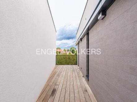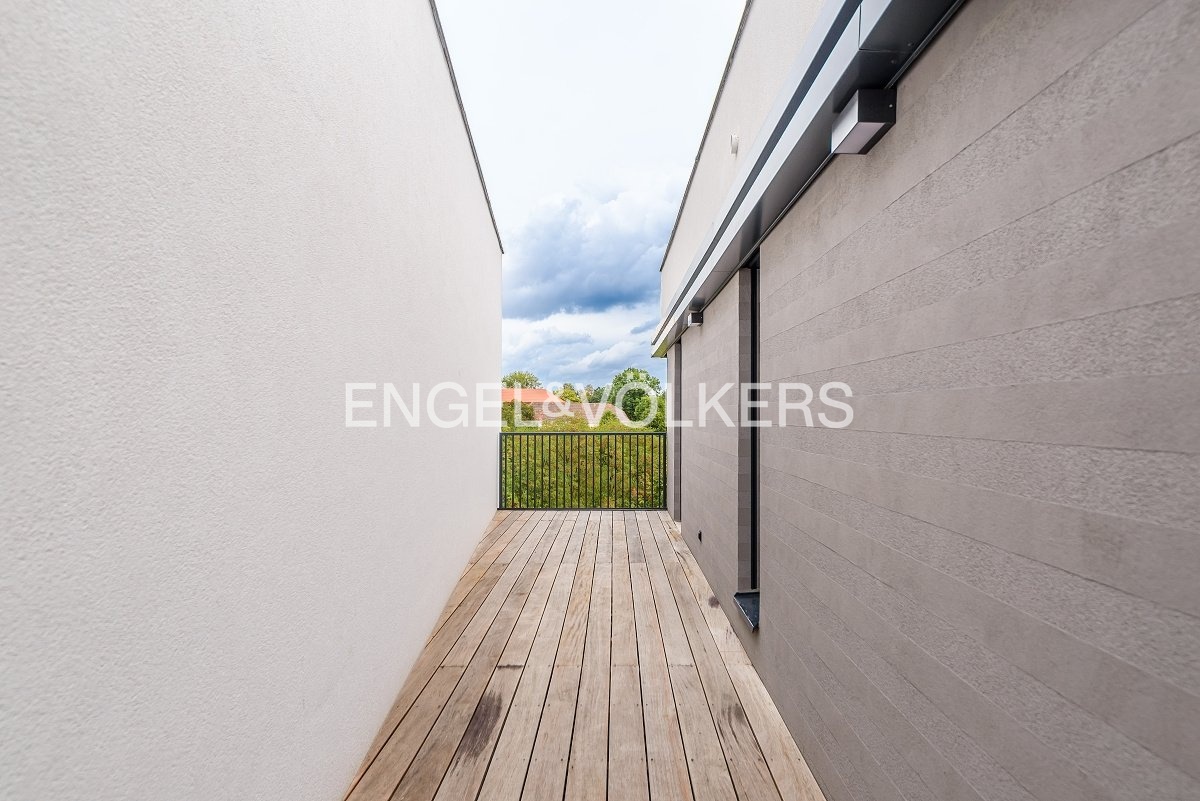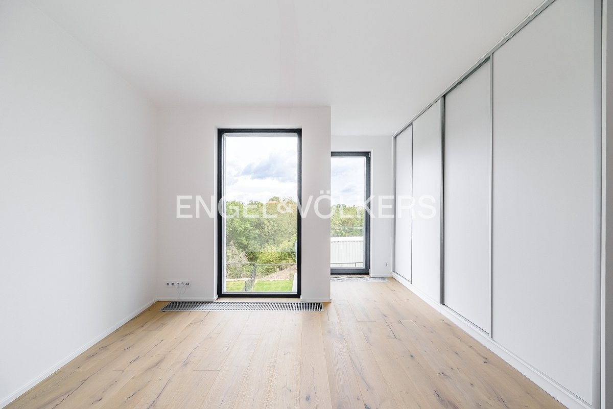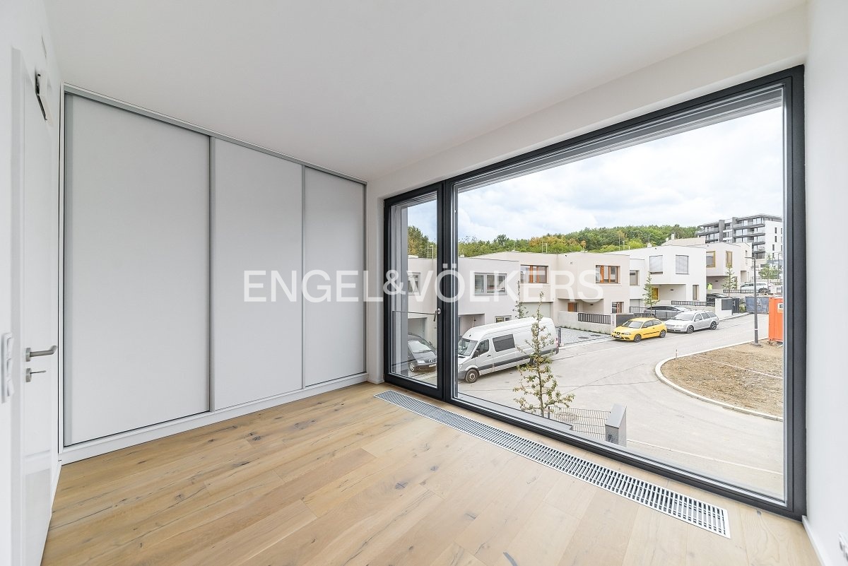 Nabízíme k dlouhodobému pronájmu nově dokončený rodinný dům s dispozicí 4+kk v žádané rezidenční lokalitě Košíře. Rodinný dům je součástí nového developerského projektu Top Rezidence Pomezí a díky své lokalitě nabízí výbornou dostupnost do centra nebo do přírodního parku Cibulka, který je vzdálený jenom 5 minut pěšky. Dům je vybavený venkovními elektrickými žaluziemi, klimatizací v každém pokoji a rekuperací. Dispozice domu: 1.PP -Obývací pokoj s kuchyňským koutem a jídelnou -Sklad -Technická místnost -Toaleta -Terasa se vstupem na zahradu 1.NP - Vstupní chodba se vstupem do garáže - Ložnice orientovaná do zeleně s en-suite koupelnou - Koupelna se sprchovým koutem a toaletou 2.NP -Ložnice orientovaná do zahrady -Ložnice orientovaná do ulice - Koupelna s vanou -Terasa Kauce jsou dva měsíční nájmy. Provize je jeden měsíční nájem + DPH.