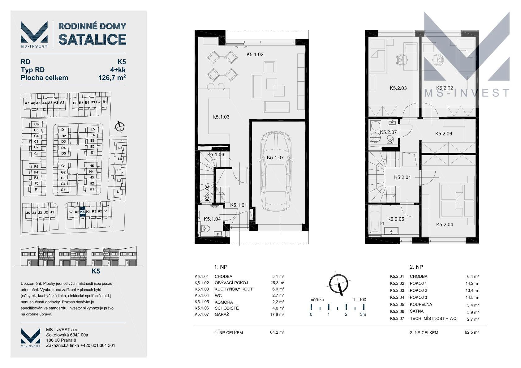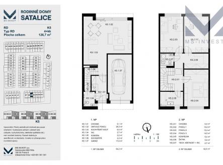 V rámci projektu RD Satalice se v nově vzniklé ulici Hubačova nachází nabízený středový dům 4+kk o celkové ploše 127m2 Dům disponuje v 1. NP vlastní garáží, šatnou, komorou, toaletou, prostorným obývací pokojem s kuchyňským koutem o ploše 32 m a navazující terasou propojující dům se zahradou. Zahrada je orientována na jih. Ve 2. NP se nachází hlavní ložnice o ploše 15 m, dále 2 další ložnice, koupelna s vanou a samostatné WC spojené s technickou místností. Pozemek tohoto domu má velikost 197 m. V ceně domu je již naistalovaná kvalitní německá kuchyňská linka zn. Nolte se spotřebiči zn. Siemens. Dále je v ceně domu mimo jiné fotovoltaika s bateriovým úložištěm a napojením do distribuční soustavy, dálkově ovládané hliníkové předokenní žaluzie na všech oknech a položený kvalitní travní koberec na zahradě. V rámci developerského projektu Rodinné domy Satalice vznikne celkem 48 řadových rodinných domů provedených ve třech variantách s dispozicemi 4+kk až 5+kk, užitnou plochou od 127 m až 160 m. Pozemky s výměrou až 363 m nabídnou dostatek prostoru pro celou rodinu. Domy jsou již dokončeny, zkolaudovány a připraveny k nastěhování. Prodej přímo od developera.