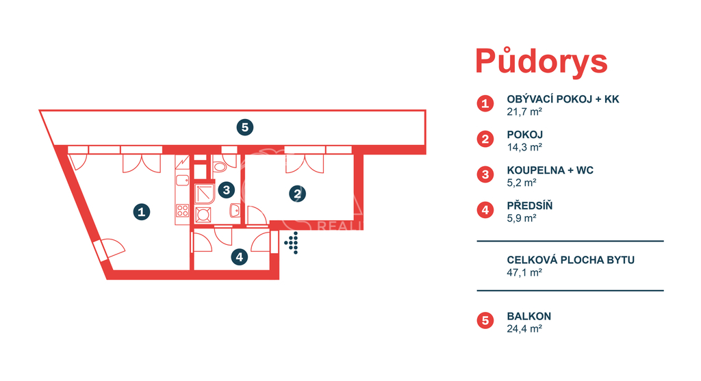 Exkluzivní nabídka pronájmu nového bytu o dispozici 2+kk s garážovým stáním v projektu Rezidence U hostivařské přehrady, ul. Výstavní, Praha 11 - Háje. Byt o celkové výměře 78 m² (vnitřní plocha bytu 47,1 m², balkon 24,4 m², sklep 6,5 m²) je umístěn v 5. NP novostavby bytového domu z roku 2025. Byt sestává z obývacího pokoje s kuchyňským koutem, ložnice, koupelny se sprchovým koutem a WC a předsíně. V bytě je položena vinylová podlaha a dlažba. Orientace bytu je na sever. Z obývacího pokoje a ložnice je možný vstup na velkorysý balkon s výhledem do rozlehlé zeleně hostivařské přehrady. Byt je vybaven kuchyňskou linkou s vestavěnými spotřebiči, prostornými vestavěnými skříněmi v předsíni, pračkou kombinovanou se sušičkou, rekuperací vzduchu a venkovními žaluziemi na dálkové ovládání ve všech oknech (vč. koupelny). K bytu dále náleží nadstandardně velký sklep, který je umístěn v suterénu domu hned za garážovým stáním o velikosti stání pro invalidy. Sklep i stání se pronajímají spolu s bytem. V místě naleznete vše potřebné. Přímo před domem se nachází zastávka BUS (směr Háje, Černý Most, Strašnická ad.). V projektu je prodejna potravin, v dosahu pak kompletní občanská vybavenost Jižního města. Pro trávení volného času je vám k dispozici vodní nádrž Hostivař s rozsáhlým lesoparkem nebo přilehlý Milíčovský les. Doporučujeme zájemcům o moderní bydlení. Byt dosud nebyl obýván. Ihned k nastěhování. Společně s nájemným se hradí pouze poplatky ve výši 3.500,- Kč + elektřina, která se převádí na nájemníka. Kauce ve výši dvou nájmů, provize ve výši jednoho nájmu. Pokud máte zájem o prohlídku, vyplňte prosím formulář níže, co nejdříve se vám ozveme.