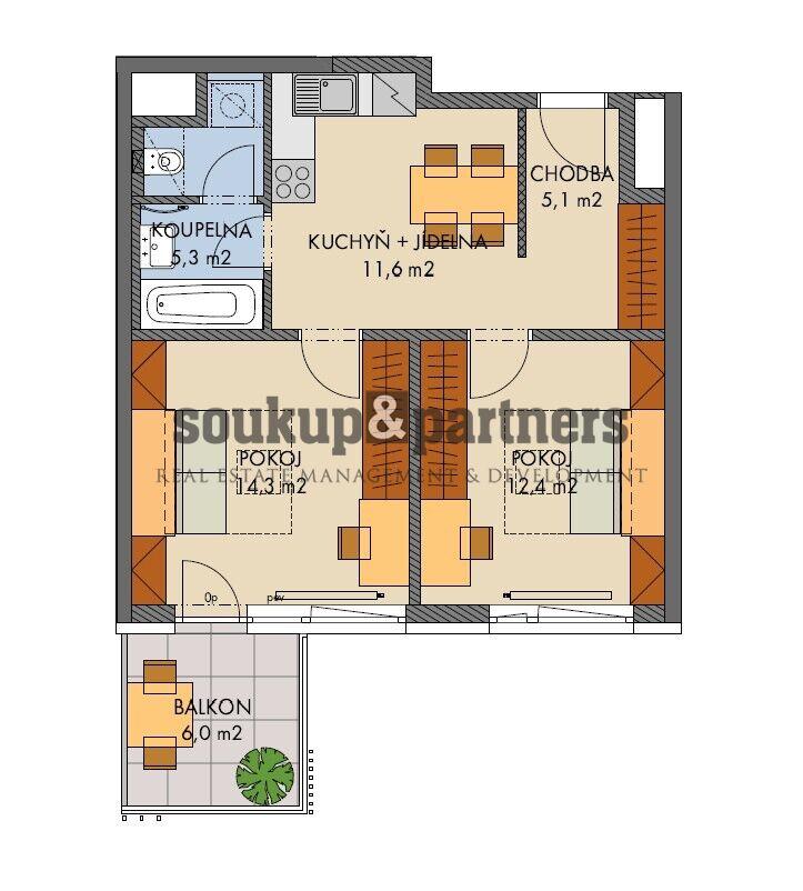 Prodej bytu, 2+1, 57 m²