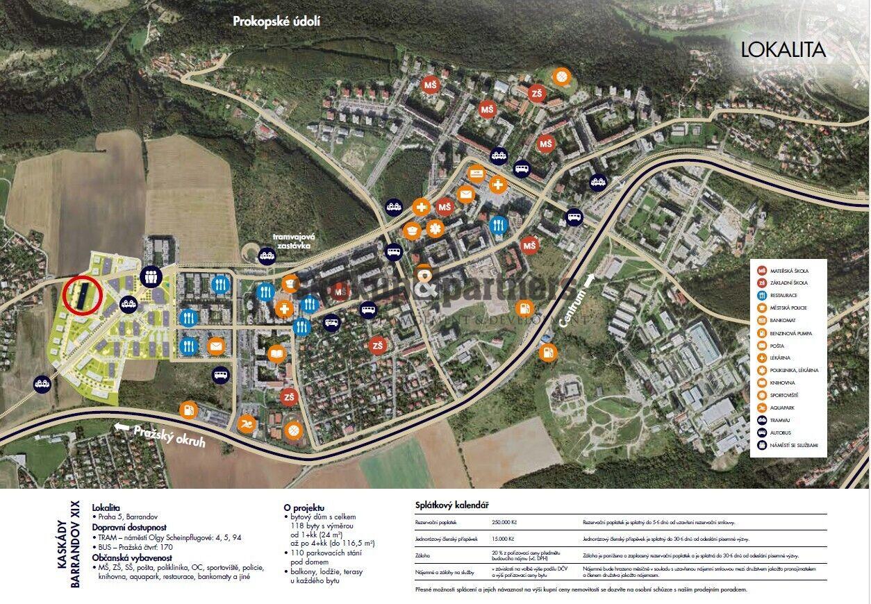 Prodej nového družstevního bytu 2+1 s krytým balkonem/ lodžií v projektu Kaskády Barrandov na Praze 5, novostavba FINEP, tramvajová zastávka u domu, rychlé spojení na metro Smíchovské nádraží. Vhodné pro bydlení i investici, možnost převodu do osobního vlastnictví. Kolaudace plánována 7/2026. Dispozice: 2+1 | Podlaží: 2. NP. Plocha bytu: 51 m² + balkon 6 m². Orientace: jihovýchod do zeleně. Dům: N. Cena obsahuje: • interiérové dveře Sapelli • kompletně vybavenou koupelnu • přípravu na kuchyňskou linku a pračku • protipožární vstupní dveře • dotace 500 Kč/m² na podlahy Jednoduché financování bez nutnosti vyřizování hypotéky: • 3.490.000,- Kč – platba při převodu bytu • 5.095.349 Kč – anuita, splatná po předání Anuitu lze splácet měsíčně, vkládat mimořádné splátky, doplatit jednorázově nebo refinancovat. Úvěr je již schválen, není nutné dokládat příjmy, věk ani jiné standardní podmínky bank. Lokalita & občanská vybavenost Projekt Kaskády Barrandov se nachází v klidné a vyhledávané části Prahy 5 s výbornou dopravní dostupností do centra města. V docházkové vzdálenosti je plánovaná nová tramvajová trať, která zajistí rychlé spojení na metro Smíchovské nádraží. Automobilová doprava je komfortní díky snadnému napojení na Pražský okruh i rychlé dostupnosti Letiště Václava Havla. Lokalita nabízí kompletní občanskou vybavenost – obchody, restaurace, kavárny, školy, školky i zdravotnická zařízení. Velkou předností je dostatek zeleně a volnočasových možností, včetně Prokopského a Dalejského údolí, cyklostezek a sportovišť. Barrandov je ideální volbou jak pro vlastní bydlení, tak pro dlouhodobou investici s vysokým potenciálem zhodnocení.
