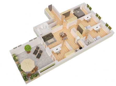Nový rodinný byt 5+kk s prostornou terasou v novostavbě Zelené kaskády.