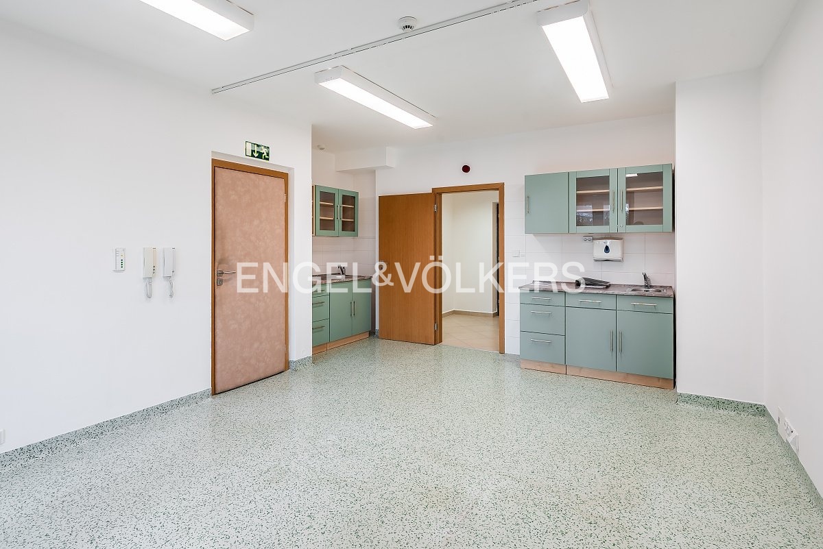 Nabízíme k pronájmu reprezentativní nebytový prostor o celkové výměře 50 m², který je díky svému technickému řešení a kolaudaci ideální pro provozování ordinace či jakéhokoli jiného zdravotnického zařízení. Velkou předností tohoto prostoru je vlastní nezávislý vstup vedoucí přes soukromou předzahrádku, což zajišťuje maximální soukromí klientů a bezbariérový přístup přímo z ulice. Dispozice je velmi prakticky rozdělena do dvou průchozích místností, z nichž první je ideální pro vybudování recepce s čekárnou a druhá slouží jako samotná ordinace. Ta je již vybavena dvěma dřezy, čímž splňuje přísné hygienické normy pro zdravotnické provozy. Zázemí prostoru dále tvoří spojovací chodba a dvě samostatné toalety. Prostory jsou ve výborném stavu, světlé a připravené k okamžitému předání i zahájení provozu bez nutnosti dalších úprav. Pro více informací kontaktujte realitní makléřku.