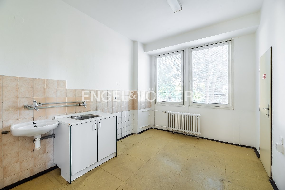 Nabízíme k pronájmu prostory v poliklinice na pražském Břevnově, ideální pro zdravotnické nebo doplňkové služby. Prostor se nachází v 1. nadzemním podlaží budovy polikliniky a disponuje samostatným vchodem se schodištěm. Skládá se z předmístnosti, chodby, dvou kanceláří (jedna s parketovou podlahou, druhá s linoleem), odběrové místnosti s umyvadlem a dřezem, koupelny s umyvadlem a vanou, skladu s výlevkou a samostatné toalety. Prostory jsou po bývalém odběrovém centru. Lokalita Břevnova je známá svou klidnou a příjemnou atmosférou, přesto nabízí výbornou dopravní dostupnost. Poliklinika je snadno dostupná městskou hromadnou dopravou, v blízkosti jsou zastávky tramvají a autobusů, a zároveň je lokalita dobře napojena na hlavní dopravní tepny. Okolí Břevnova je tiché, obklopené zelení, což vytváří ideální prostředí pro zdravotnické služby a práci s klienty. Prostor je vhodný zejména pro zřízení ordinace praktického lékaře nebo specialisty, případně pro jiný provoz doplňující nabídku služeb polikliniky. Díky svému uspořádání a vybavení je prostor flexibilní a přizpůsobitelný různým potřebám. V případě zájmu o prohlídku nebo další informace nás prosím kontaktujte.
