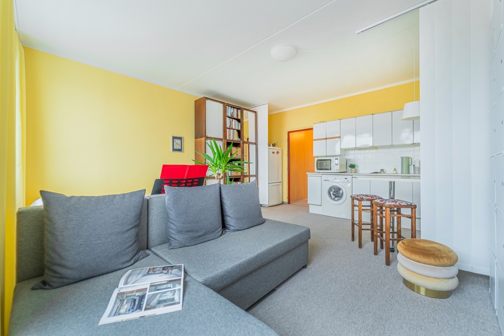 Zájemcům o zajímavou investiční příležitost nabízíme ke koupi velmi pěkný a udržovaný byt 1+kk v Praze-Kamýku. Jednotka je umístěna ve 12. nadzemním (předposledním) podlaží dobře udržovaného a revitalizovaného bytového domu. Je dostatečně vzdálena od běžného ruchu ulice, a kromě krásného výhledu tak nabízí i klidné a příjemné bydlení. Dispozice bytu zahrnuje vstupní předsíň s velkou šatní skříní, koupelnu se sprchovým koutem a WC a prostorný pokoj s kuchyňskou linkou a dostatkem místa na spací kout i obývací část. Byt má zděné jádro a paní nájemnice, která v bytě dlouhodobě pobývá, se o něj velmi pečlivě stará. Aktuálně je nájemní smlouva uzavřena na dobu neurčitou. Byt je tedy vhodný zejména pro investory, kteří ocení kvalitního a stabilního nájemníka, se kterým nebudou mít žádné starosti. Více informací o nájemním vztahu a výši nájemného rádi poskytneme před samotnou prohlídkou. Lokalita je bezesporu zásadním benefitem této nabídky. Přímo u domu je k dispozici supermarket a také zastávka MHD, odkud se v minutových intervalech dostanete do deseti minut na metro linky C Kačerov, a dále pak kamkoliv potřebujete v rámci celé Prahy. V případě zájmu o více informací a termín prohlídky nás neváhejte kontaktovat. Těšíme se na vás.