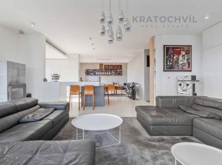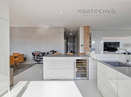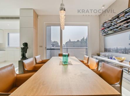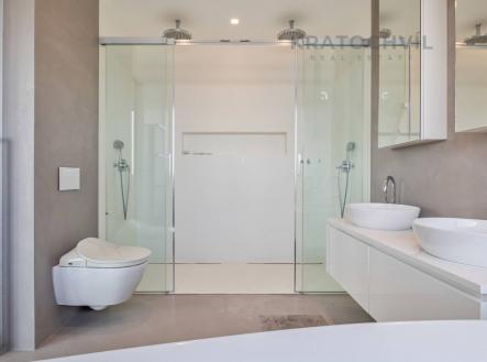 Penthouse, který mění představu o luxusním městském bydlení 231 m² interiér | 118 m² terasa | 5+kk | Praha 5 – Dívčí hrady Na jedné z nejzajímavějších pražských adres, na pomezí města a přírody, v klidné a zelené části Radlic – U Dívčích hradů – se otevírá výjimečná příležitost ke koupi penthousu, který se vymyká běžné nabídce. Byt, který je stejně velkolepý jako promyšlený. Vzdušný, prosvětlený, absolutně soukromý. Místo, které se nestane jen vaším bydlištěm, ale každodenním zážitkem. Design, prostor a světlo – perfektní souhra pro život bez kompromisů Rozloha samotného bytu činí 231 m², k tomu se přidává terasa o úctyhodných 118 m², která obklopuje celý byt a díky své orientaci na všechny světové strany nabízí výhledy, které se mění s každou denní dobou. Ranní slunce, polední klid i večerní panorama města – to vše z pohodlí vašeho soukromého prostoru. Dispozice 5+kk zahrnuje velkorysý obývací pokoj s kuchyní, čtyři samostatné ložnice, z toho jednu master bedroom s vlastní koupelnou, a celkem tři elegantní koupelny. Každý metr čtvereční je pečlivě navržen s důrazem na funkčnost, estetiku a komfort. Dominantou interiéru jsou lité podlahy s bílým povrchem, moderní stěrky v betonovém designu na stěnách, vysoké vestavěné skříně na míru v celém bytě a plissé rolety pro jemnou regulaci světla. Důmyslný systém rekuperace a klimatizace zajišťuje ideální mikroklima po celý rok. Výtah vede přímo do bytu, což umocňuje pocit soukromí a exkluzivity. Terasa, která je samostatným světem Terasa je místem, kde se spojuje relaxace s výjimečným výhledem. Díky prosklenému zábradlí vám neunikne jediný paprsek slunce ani panorama města. Je zde příprava na vířivku, venkovní vodovodní uzávěry a dostatek prostoru pro venkovní kuchyni, lounge zónu i zeleň. Je to ideální místo pro rodinné snídaně, večerní drinky i soukromé oslavy pod širým nebem. Bezpečnost a technologie – luxus, který chrání Byt je vybaven špičkovými bezpečnostními prvky – bezpečnostními dveřmi, alarmem a elektricky ovládanými venkovními žaluziemi, které zajišťují stínění i ochranu před počasím. Celý objekt působí velmi klidně a komorně, s minimem sousedů a maximem soukromí. Garáž, která skutečně počítá s vašimi potřebami K bytu náleží velká garáž pro dvě auta, navržená tak, aby nabízela nejen komfortní parkování, ale i dostatek úložných prostor – ať už pro sportovní vybavení, sezónní věci nebo třeba archív vín. Lokalita, která spojuje město a přírodu Dívčí hrady jsou výjimečné nejen svou polohou, ale i atmosférou. V bezprostřední blízkosti najdete přírodní parky, cyklostezky a vyhlídky. Přitom jste jen pár minut autem i MHD od centra Prahy, nákupních center i škol. Je to místo, kde se dá dýchat, žít i růst. Tento byt není pro každého. Ale pro vás může být naprosto ideální. Nadčasová architektura, špičkové materiály, technická vybavenost a poloha, která se v Praze hledá jen těžko. Pokud hledáte výjimečný prostor pro život – srdcem ve městě, ale duší v přírodě – pak věřte, že jste právě našli víc než jen byt. Našli jste domov.