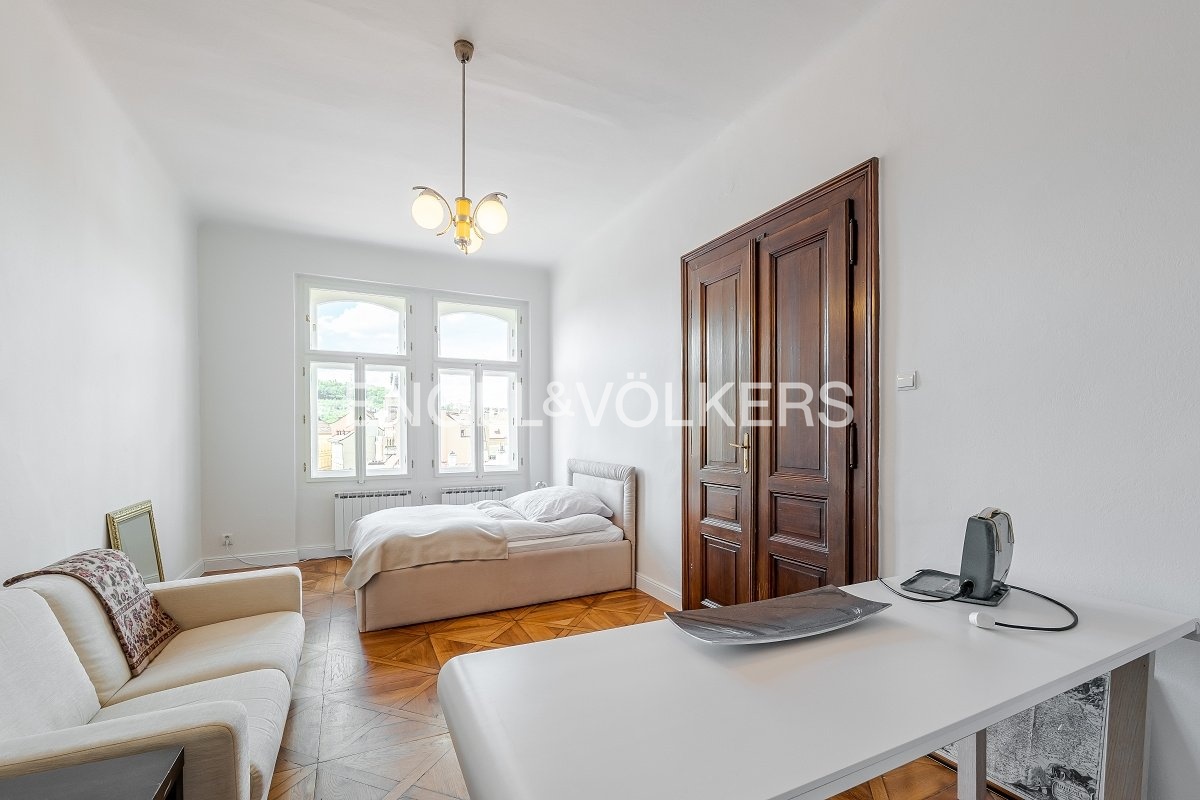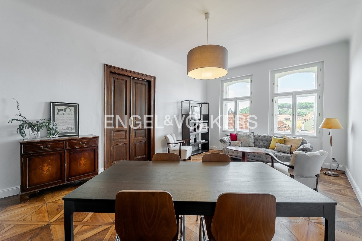 K pronájmu Vám nabízíme prostorný plně zařízený byt s dispozicí 3+1 v srdci Starého Města. Ve 4. nadzemním podlaží historického činžovního domu s výtahem do mezipatra se nachází byt o velikosti 91 m2. Interiér bytu tvoří vstupní chodba s kuchyňským koutem plně vybaveným spotřebiči, obývací pokoj s jídelním koutem a s krásnými výhledy na historickou zástavbu Starého Města. Dále byt disponuje dvěma ložnicemi, jednou s pracovním koutem a druhou se šatnou a orientací do vnitrobloku domu. Součástí je i koupelna se sprchovým koutem a pračkou schovanou ve vestavěném nábytku a samostatná toaleta se vstupem z chodby. Bonusem je prostorná komora a sklep. Byt se pronajímá plně zařízený designovým nábytkem. Poplatky činí 3 170 Kč / měsíc, elektřina se přepisuje na nájemce. Vratná kauce činí dva měsíční nájmy. Provize realitní kanceláři je jeden měsíční nájem + DPH.