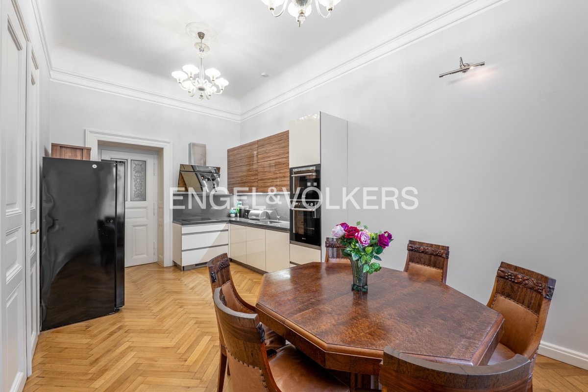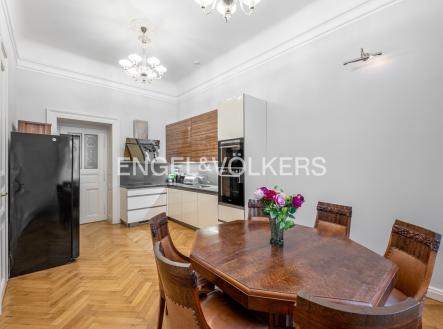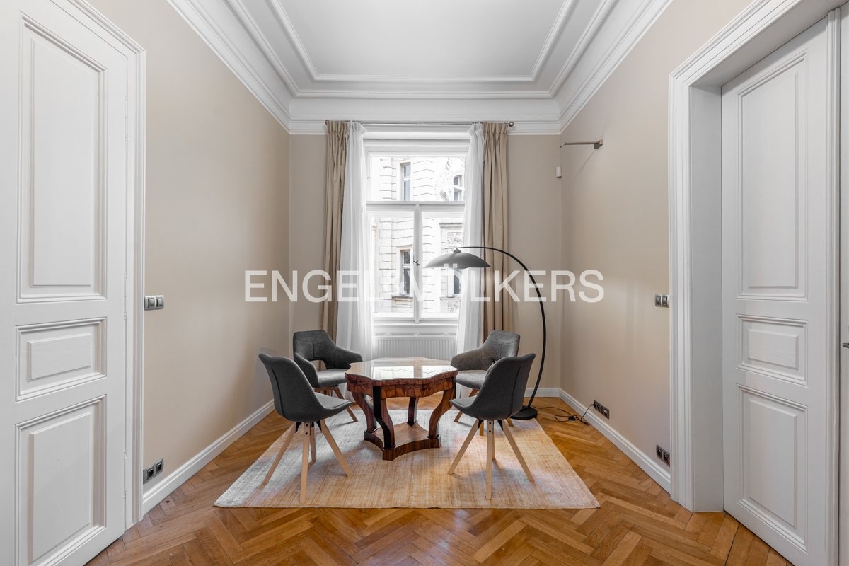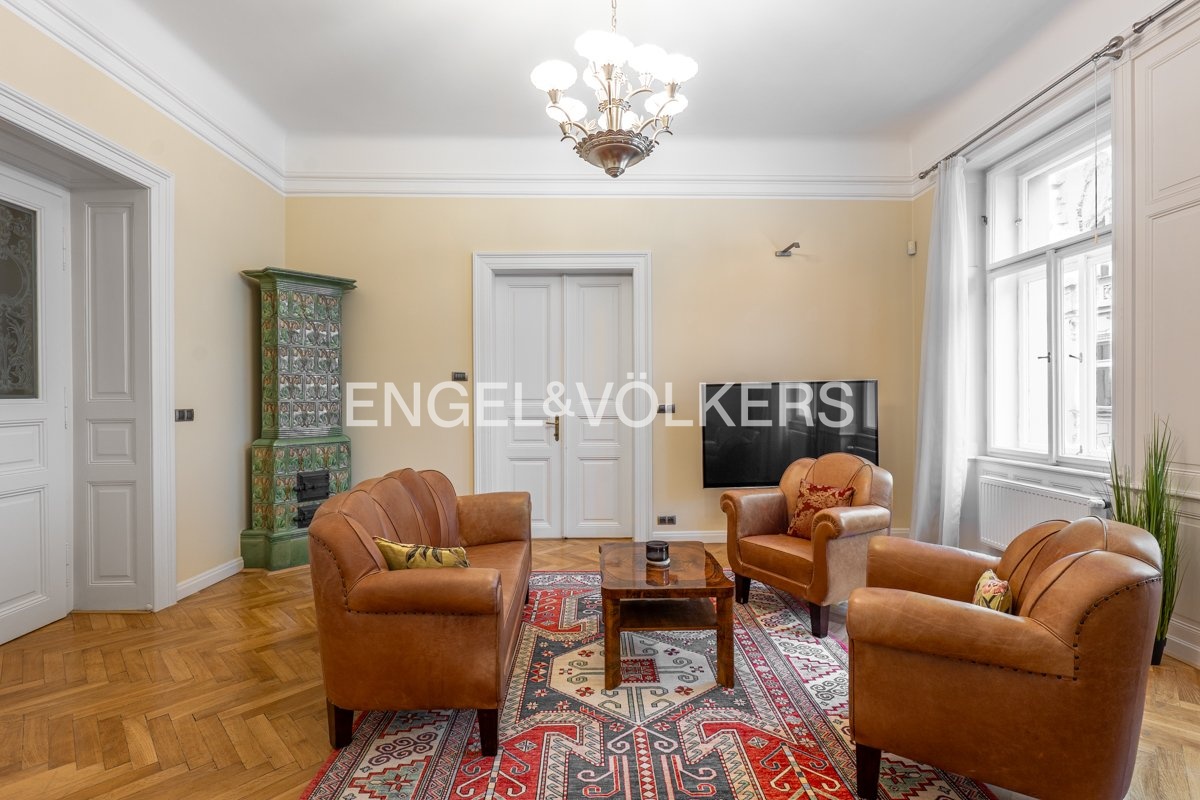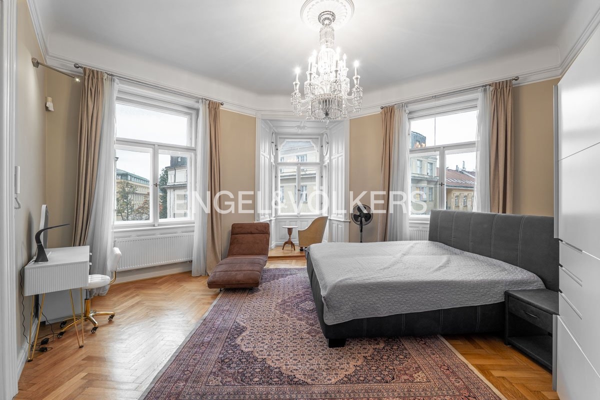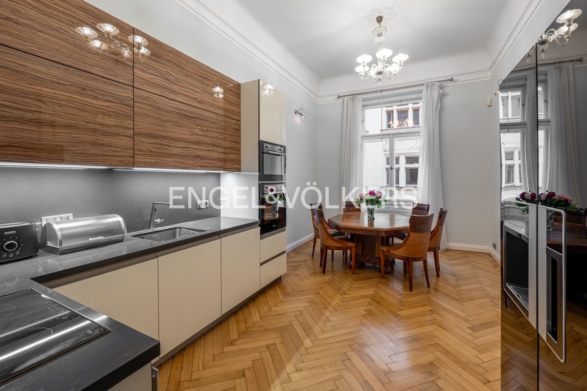 K okamžitému pronájmu nabízíme plně zařízený prostorný byt s dispozicí 4+1, situovaný jen pár kroků od Staroměstského náměstí. Byt se nachází ve třetím nadzemním podlaží secesního činžovního domu s výtahem přímo v srdci staré Prahy. Interiér kombinuje původní architektonické prvky s moderním designem a praktickým uspořádáním. Dispozici bytu tvoří vstupní hala, samostatná kuchyně na míru vybavená spotřebiči značky Bauknecht a americkou lednicí, dále prostorný obývací pokoj a tři samostatné pokoje. Hlavní ložnice je krásně světlá s výhledem do ulice Široká, druhá ložnice disponuje en suite koupelnou a balkonem orientovaným do klidného vnitrobloku. Třetí pokoj je průchozí a je možné jej využít jako pracovnu. Byt má dvě koupelny, obě se sprchovým koutem. K dispozici je také praktická technická místnost s pračkou, sušičkou a dostatkem úložného prostoru. V bytě byly použity kvalitní materiály – původní repasované a parkety, špaletová okna, kazetové dveře, designový nábytek a původní plně funkční kachlová kamna. Byt je vytápěn samostatným plynovým kotlem. Pronajímá se kompletně zařízený. Tato nemovitost představuje ideální volbu pro ty, kteří hledají stylové a komfortní bydlení v centru města s výbornou dostupností a atmosférou historické Prahy. Poplatky činí 4 000 Kč / měsíc, elektřina a plyn se převádí na nájemce. Vratná kauce je ve výši dvou měsíčních nájmů. Provize realitní kanceláři je jeden měsíční nájem + DPH.