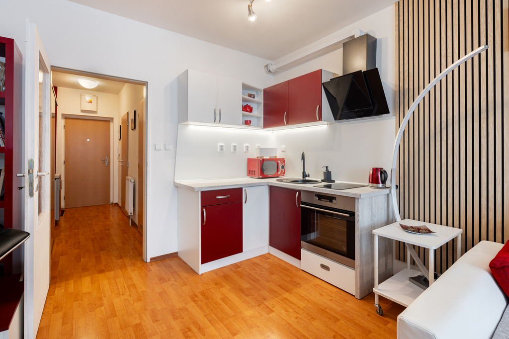 Nabízím k podnájmu byt o dispozici 1+kk, užitné ploše 30,7m2 s jedním garážovým stáním (parkliftem). Byt se nachází přízemí s možností vstupu na travnatou předzahrádku přímo z bytu v klidné Herlíkovické ulici v pražských Kbelích. Byt je vybaven pračkou, skříněmi s úložným prostorem, rozkládacím gaučem a kuchyňskou linkou (bez myčky) s menší lednicí. K nástěhování od 1.1.2026 Nájemné: 16.000 Kč Elektřina: 700 Kč Poplatky: cca 2.200 Kč Internet: 350 Kč Kauce: 20.000 Kč Zprostředkovatelský poplatek: 16.000 Kč Pro více informací mě neváhejte kontaktovat.