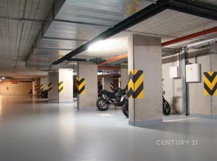 Garážové stání, které je určeno pro parkování motocyklů v novostavbě bytového domu v ulici Komunardů 1608/20. Parkovací stání je vymezeno od levého pilíře o šíři 1,40m. Garáž je temperovaná, je zde instalován kamerový systém a v nočních hodinách je celý objekt hlídán fyzickou osobou.