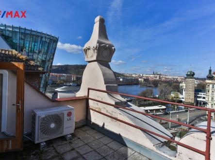 Nabízíme k podnájmu mezonetový byt s terasou o dispozici 3+kk nacházející se ve VI. NP cihlové budovy s výtahem vedle Tančícího domu v Gorazdově ulici. Celková užitná plocha činí 116,10 m2, z toho plocha bytu činí 100,10 m2. Byt se sestává z obývacího pokoje s kuchyňským koutem a jídelním koutem, dvou ložnic - jedna ve spodní části bytu a druhá v horní části bytu, dvou koupelen - s vanou a sprchovým koutem ve spodní části bytu a sprchovým koutem v horní části bytu, dvou WC - samostatné ve spodní části bytu a společné s koupelnou v horní části bytu, předsíně a malé komory. K bytu náleží terasa o výměře cca 6m2 přístupná z části jídelního koutu a kuchyně. Kuchyňská linka na míru je vybavena těmito vestavěnými spotřebiči: sklokeramická deska, el. trouba, mikrovlnná trouba, myčka nádobí, lednice s mrazákem a digestoř. V ložnici ve spodní části bytu je k dispozici vestavná skříň. Byt má kombinované podlahy - parkety v obývací části, korek v kuchyňském koutu a jídelním koutu, v ložnicích plovoucí podlahy a keramická dlažba v koupelnách, WC a předsíni. Byt je navíc vybaven klimatizací a pračkou. Vytápění zajišťuje elektrokotel s radiátory. Zálohy na energie činí 4.000 Kč měsíčně, elektřina bude převedena na podnájemce. Majitelem je požadovaná kauce ve výši 2 měsíčních nájmů. Odměna společnosti za zprostředkování činí 1 měsíční nájem + DPH. Poloha bytového domu u Tančícího domu a nábřeží Vltavy zúročuje výhody malé vzdálenosti do městského centra, úžasného výhledu na Vltavu a Pražský hrad. Lukrativní adresa. Volný ihned
