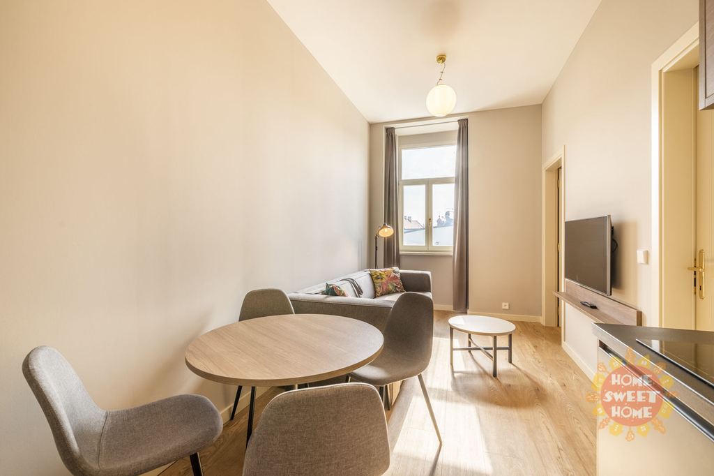 Zařízený byt 2+kk po kompletní rekonstrukci o celkové výměře 33m2 se nachází ve čtvrtém patře cihlového domu s výtahem v nově zrekonstruovaném domě z roku 2021 v ulici Opletalova, Nové Město. Bydlení se nachází ve velice vyhledávané lokalitě a to cca 100 metrů od Václavského náměstí. Byt sestává z obývacího pokoje s plně vybavenou kuchyňskou linkou, ložnice a koupelna se sprchovým koutem a toaletou. Součástí domu je recepce 24/7 a prádelna. V ceně poplatků je zahrnuta energie, vysokorychlostní Wi-Fi, 68 televizních kanálů, svoz odpadu, úklid společných prostor, recepce. Možnost pronájmu bytu i se službami za příplatek (pravidelný úklid, výměna ložního prádla, koupelnové kosmetické doplňky v BIO kvalitě). V blízkosti naleznete Vrchlického sady, Slovanský dům (Cinema City), Národní muzeum, Státní opera a mnoho obchodů s módou, restaurací a kaváren. Výborná dopravní spojení: 1min chůze na stanici metra nebo tram zastávku "Hlavní nádraží" nebo 3 min. chůze na stanici metra "Muzeum". Možný i kratší pronájem od 3 měsíců. Pro bližší informace neváhejte kontaktovat makléře.