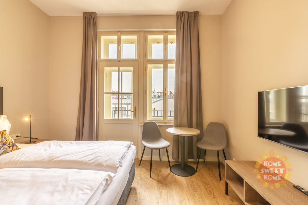Praha 1, moderní zařízený byt 1+kk po rekonstrukci k pronájmu (24m2), balkon, ulice Opletalova