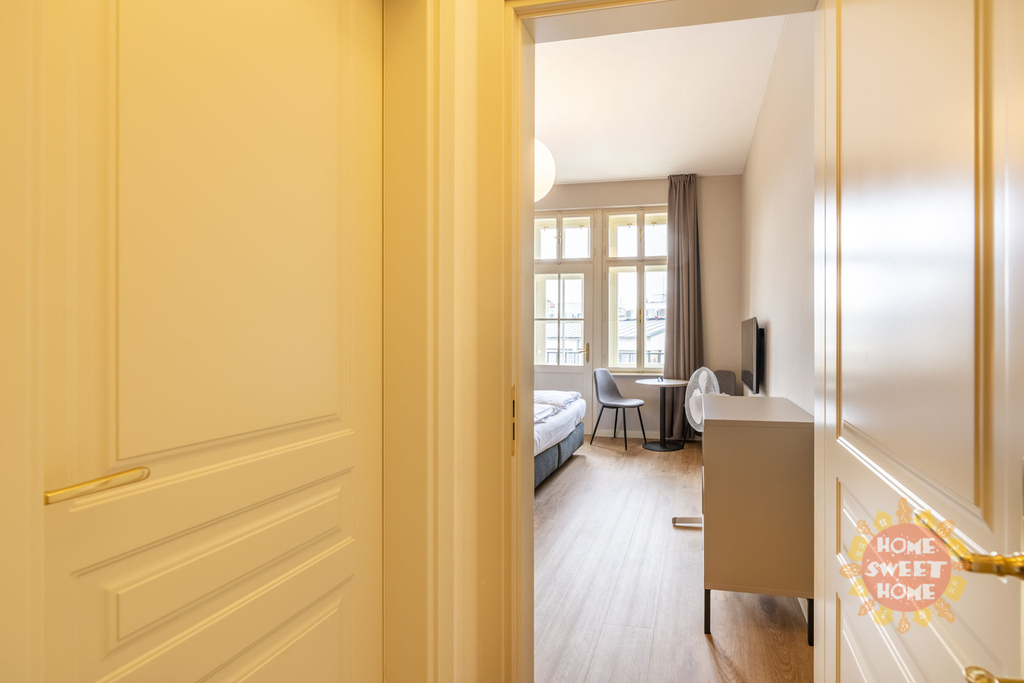 Moderní zařízený byt 1+kk po kompletní rekonstrukci o celkové výměře 24m2 s balkónem se nachází v pátém patře cihlového domu s výtahem v nově zrekonstruovaném domě z roku 2021 v ulici Opletalova, Nové Město. Bydlení se nachází ve velice vyhledávané lokalitě a to cca 100 metrů od Václavského náměstí. Byt sestává z obývacího pokoje s plně vybavenou kuchyňskou linkou, ložnice a koupelna se sprchovým koutem a toaletou. Součástí domu je recepce 24/7 a prádelna. V ceně poplatků je zahrnuta energie, vysokorychlostní Wi-Fi, 68 televizních kanálů, svoz odpadu, úklid společných prostor, recepce. Možnost pronájmu bytu i se službami za příplatek (pravidelný úklid, výměna ložního prádla, koupelnové kosmetické doplňky v BIO kvalitě). V blízkosti naleznete Vrchlického sady, Slovanský dům (Cinema City), Národní muzeum, Státní opera a mnoho obchodů s módou, restaurací a kaváren. Výborná dopravní spojení: 1min chůze na stanici metra nebo tram zastávku "Hlavní nádraží" nebo 3 min. chůze na stanici metra "Muzeum". Pro bližší informace neváhejte kontaktovat makléře.