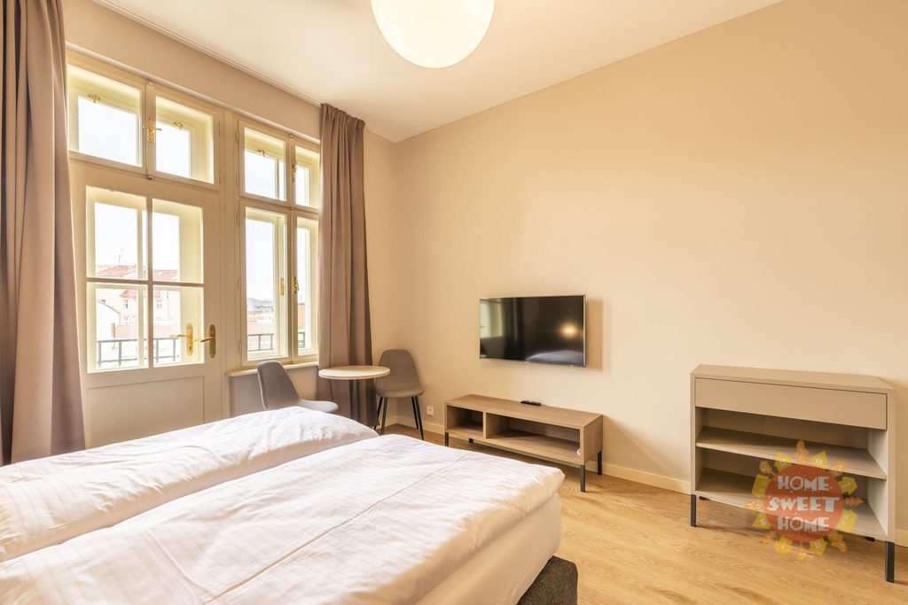 Praha 1, moderní zařízený byt 1+kk po rekonstrukci k pronájmu (24m2), balkon, ulice Opletalova