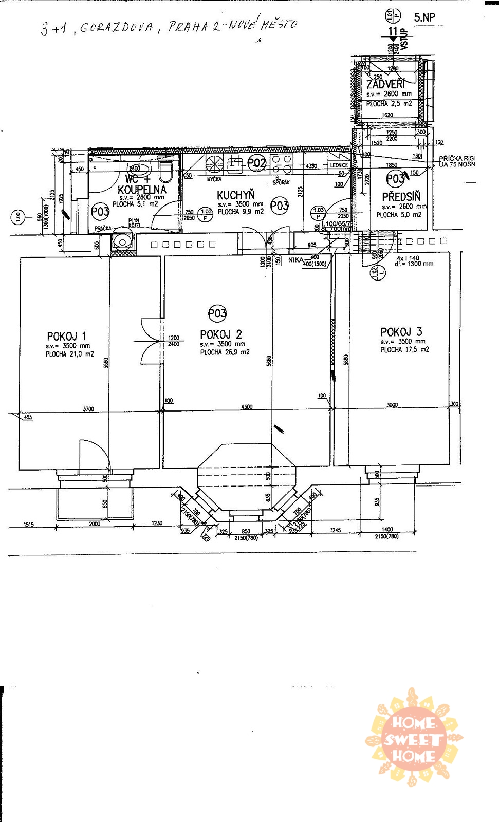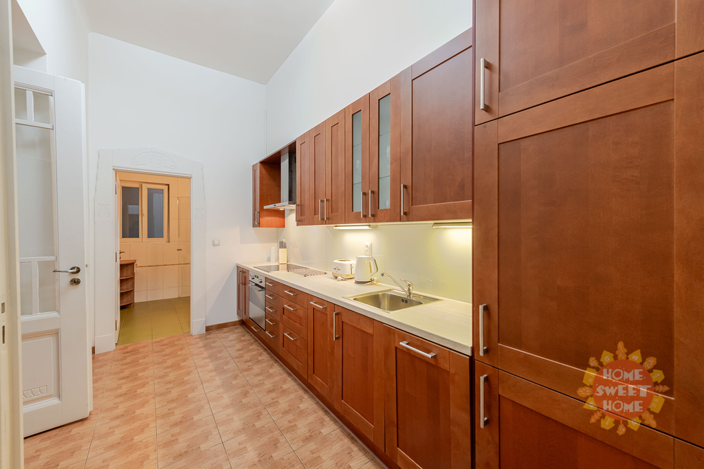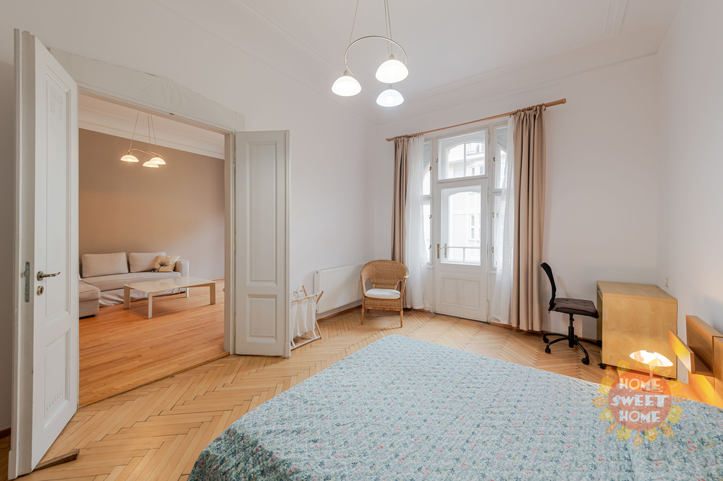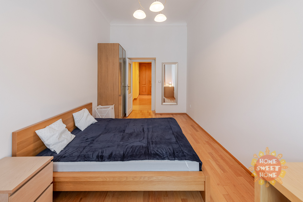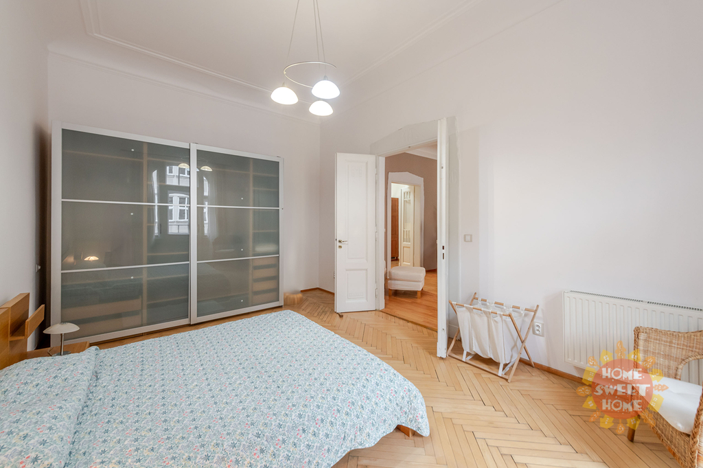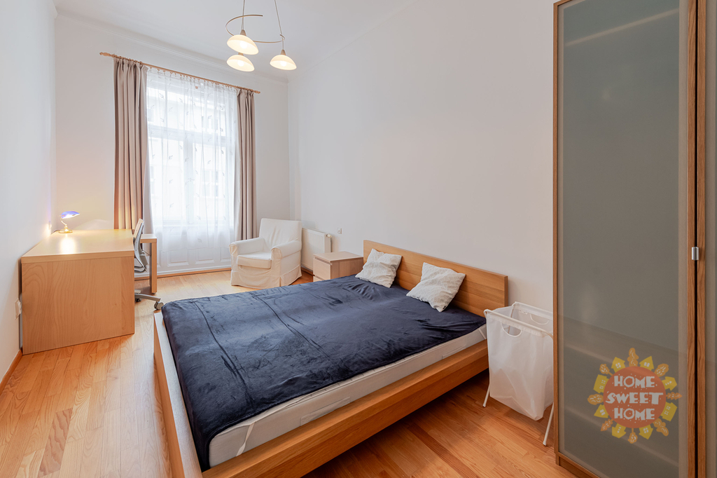 Nabízíme k pronájmu krásný kompletně zařízený byt 3+1 (90m2), který se nachází ve čtvrtém patře secesního domu s výtahem na Praze 2 - Nové Město, Gorazdova ulice. Tento velmi útulný byt sestává ze vstupní chodby, prostorného obývacího pokoje, dvou ložnic (jedna ložnice se vstupem na balkón o rozloze 2m2), kompletně vybavené kuchyňské linky včetně nádobí - lednice, pračka, myčka, digestoř, sklokeramická varná deska. V koupelně je sprchový kout, toaleta a pračka. Bezpečnostní vchodové dvěře a domovní video telefon. Topení etážové plynové (vlastní plynový kotel) a podlahové vytápění v obývacím pokoji, kuchyni, koupelně a předsíni. V blízkosti se nachází Tančící dům. Výborná dopravní dostupnost. Nedaleko domu stanice metra "B" Karlovo náměstí a také stanice tramvaje a autobusu. Byt je k dispozici od 1.února 2026.