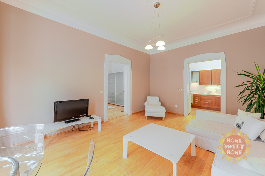 Nabízíme k pronájmu krásný kompletně zařízený byt 3+1 (90m2), který se nachází ve čtvrtém patře secesního domu s výtahem na Praze 2 - Nové Město, Gorazdova ulice. Tento velmi útulný byt sestává ze vstupní chodby, prostorného obývacího pokoje, dvou ložnic (jedna ložnice se vstupem na balkón o rozloze 2m2), kompletně vybavené kuchyňské linky včetně nádobí - lednice, pračka, myčka, digestoř, sklokeramická varná deska. V koupelně je sprchový kout, toaleta a pračka. Bezpečnostní vchodové dvěře a domovní video telefon. Topení etážové plynové (vlastní plynový kotel) a podlahové vytápění v obývacím pokoji, kuchyni, koupelně a předsíni. V blízkosti se nachází Tančící dům. Výborná dopravní dostupnost. Nedaleko domu stanice metra "B" Karlovo náměstí a také stanice tramvaje a autobusu. Byt je ihned k dispozici.