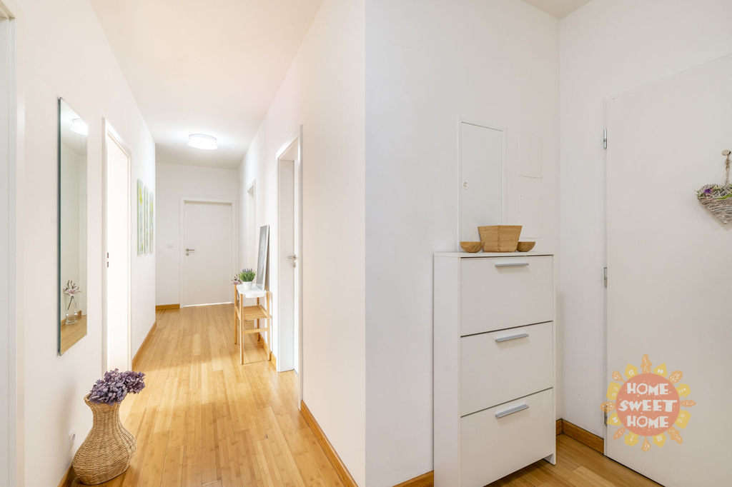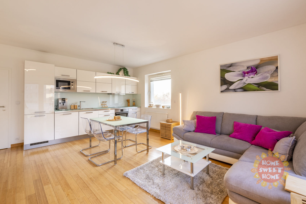 Nabízíme k prodeji moderní byt 3+kk v osobním vlastnictví o celkové užitné ploše 78,70 m² s balkónem (5m2), sklepní kójí (3,30m2) a garážovým stáním. Byt se nachází ve druhém nadzemním podlaží novostavby v komorním rezidenčním projektu Viladomy Na Vidouli z roku 2016 v ulici Klečkova na Praze 5 – Stodůlky. Výhodou lokality je klidné a bezpečné bydlení se soukromým parkem v uzavřeném areálu. Byt sestává ze vstupní chodby (15,20m2), obývacího pokoje s kuchyňským koutem (28,70m2) a vstupem na balkón (5m2), ze kterého je krásný výhled do přilehlého parku. Kuchyň je vybavena moderními spotřebiči, včetně sklokeramické varné desky, elektrické trouby, mikrovlnné trouby, myčky, kombinované lednice, kávovaru a digestoře. Dále je zde ložnice (12,20m2) s vlastní koupelnou se sprchovým koutem a WC (3,40m2), dětský pokoj/pracovna (10,90m2) druhá velká koupelna (6,20m2) a samostatné WC (2,20m2). Díky orientaci bytu na východ, jih a západ je byt prosluněný v průběhu celého dne. Samozřejmostí je bezproblémové připojení vysokorychlostního internetu. Byt je vybaven centrálním vytápěním, což zajišťuje příjemnou atmosféru po celý rok. Dlažba a podlaha z dřevobambusu dodávají interiéru moderní přírodní charakter. Podzemní garážové stání, sklep (3,30m2) a vybavení bytu je součástí kupní ceny. Skvělá dopravní dostupnost je dalším nesporným benefitem této lokality. Rychlé napojení na Rozvadovskou spojku a autobusová zastávka „Ordovická“ vzdálená pouhých 180 m od domu usnadňují spojení s centrem města i okolními oblastmi. V těsné blízkosti se nachází obchodní centrum „Metropole Zličín“, obchodní dům IKEA, Fakultní nemocnice v Motole, restaurace, kavárny a další služby. Pro milovníky přírody a sportu je v dosahu přírodní park Košíře-Motol a golfové hřiště, což z této lokality činí ideální místo pro život i investici. Tato nemovitost představuje skvělou investiční příležitost díky výhodnému umístění. V případě zájmu o prohlídku nás neváhejte kontaktovat.