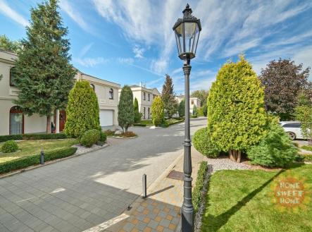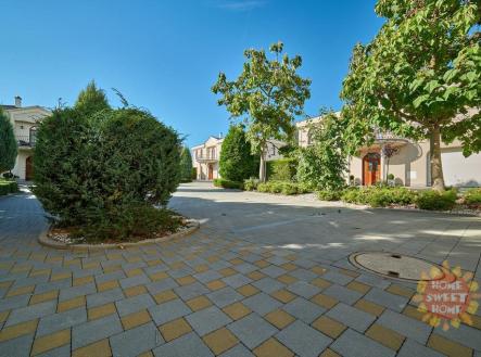 Nabízíme k pronájmu luxusní rodinnou vilu o dispozici 5+1 ve vyhledávané a velmi oblíbené lokalitě Praha 6 - Nebušice. Celková rozloha domu činí 243 m² a velkou výhodou je hezká a udržovaná zahrada s vyhřívaným bazénem. Dům je součástí vilovém komplexu. V přízemí domu je vstupní hala, prostorný obývací pokoj s krbem a kompletně vybaveným kuchyňským koutem, toaleta, šatna a prostorná garáž. V prvním patře se nachází čtyři ložnice a tři koupelny. Z hlavní koupelny je vstup na terasu. Bazén má rozměry 5x3x1,5 má podvodní osvětlení, protiproud a pohodlné schody. Zakrytý je solární plachtou a má pískovou filtraci. Prostorná terasa přístupná z obývacího pokoje je vybavena elektricky ovládanou markýzou. Dům se pronajímá nezařízený. Cena za služby zahrnuje i odbornou péči o bazén a zahradu. Dům je vhodný i pro nejnáročnější klienty. Je umístěn na klidném místě ve vilové čtvrti. Komplex vil sousedí s mezinárodní školou The International School of Prague, v blízkém okolí je základní i mateřská škola, zdravotní středisko, obchody, sportovní hala a tenisové centrum, golfový klub. Milovníky přírody potěší blízká přírodní rezervace Divoká Šárka nebo stezka podél Vltavy. V blízkosti je také rezidenční městská část Dejvice s další občanskou vybaveností a zastávkou metra A a tramvají "Dejvická". Skvělé spojení na letiště i do centra města.