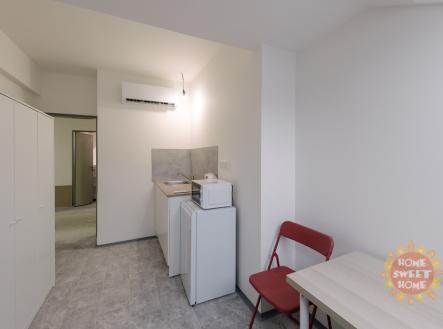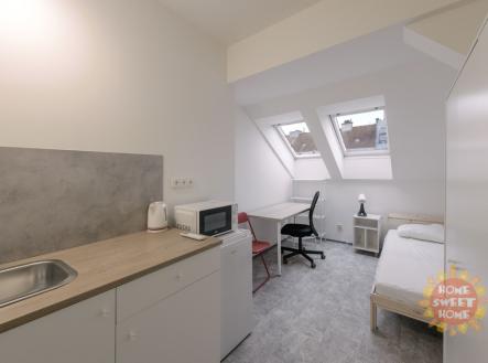 Nabízíme k pronájmu pokoj o rozloze 18 m² s vlastní kuchyňkou ve sdíleném apartmánu po kompletní rekonstrukci, který se nachází ve 4. patře cihlového domu v ulici Na Žertvách na Praze 8 - Palmovka. Tento pokoj je součástí devítipokojového bytu vybaveného vlastním menším kuchyňským koutem. Ve společných prostorech najdete kuchyni, místnost s pračkou a sušičkou, dvě koupelny se sprchovým koutem a tři oddělené toalety. Všechny pokoje jsou moderně vybaveny klimatizací, pracovním stolem, židlí, nočním stolkem, jednolůžkovou postelí včetně matrace a šatní skříní. V ceně poplatků je zahrnuto také vysokorychlostní internetové připojení a úklid společných prostor. Bydlení se nachází v bezprostřední blízkosti MHD, pár metrů od stanice metra a tram. zastávky "Palmovka". Tato lokalita je ideálním místem pro studenty, kteří ocení kombinaci klidného prostředí a snadného spojení do centra města. V blízkosti se nachází veškerá občanská vybavenost, včetně obchodů, restaurací a volnočasových aktivit. Aktuálně máme k dispozici více pokojů různých velikostí. K dispozici od 16.února. V případě zájmu o prohlídku nás neváhejte kontaktovat.
