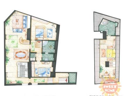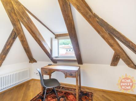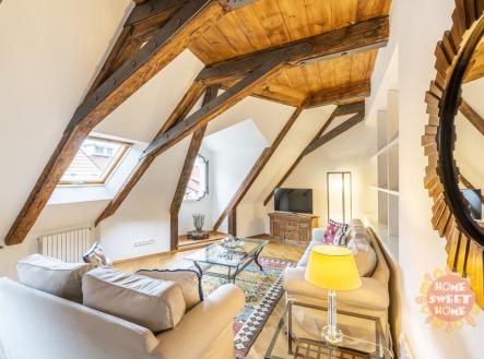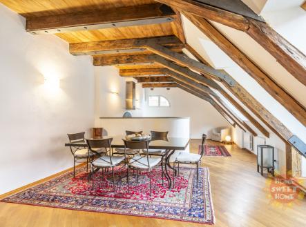 Dovolujeme si Vám nabídnout k pronájmu kompletně zařízený byt 4+1 s výjimečnou, nezaměnitelnou až magickou atmosférou, ve třetím patře neuvěřitelně krásného historického domu s výtahem ( byt má vlastní vstup do výtahu). S kouzelným přístupem přes téměř rajský dvoreček, s krásnými stromy a fontánkou. V prvním patře nalezneme dvě ložnice, koupelnu, útulný obývací pokoj s moderním kuchyňským koutem, kde je sporák se sklokeramickou deskou, trouba, lednice a myčka, ve druhém podlaží je open space prostor a koupelna. Na podlahách jsou parkety a dlažba. Byt se nachází v komplexu budov s historickým názvem Dům u tří červených srdcí. Tento komplex vznikal postupně v průběhu staletí v období románském, gotickém, renesance, baroka, klasicismu i v moderní éře. Díky citlivé, pečlivé a jednotné rekonstrukci té nejvyšší úrovně se z tohoto domu stalo místo, které si podrželo svou historickou identitu a přitom je komfortní a okouzlující zároveň. Výjimečnost této nemovitosti je dána atraktivní lokalitou (na Malé Straně, avšak na samostatném, tichém a jedinečném místě mezi Vlašskou ulicí a zelení petřínského parku) v blízkosti několika významných zastupitelských úřadů, chrámu sv. Mikuláše, Karlova mostu a Pražského hradu.