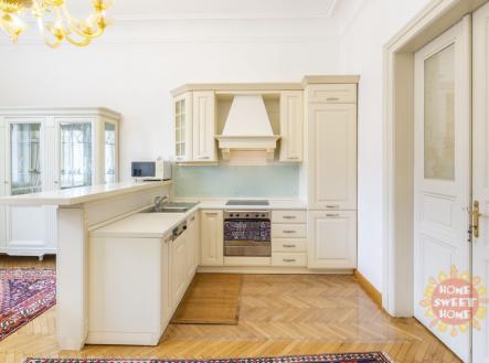 Nabízíme k pronájmu velmi pěkný byt 3+kk o celkové rozloze 79 m2 v luxusně zrekonstruovaném reprezentativním secesním domě v samém srdci Prahy nedaleko Staroměstského náměstí a nábřeží Vltavy, Truhlářská, Praha 1 - Nové Město. Apartmán se skládá z jídelny s kuchyňským koutem, obývacího pokoje, ložnice, koupelny a chodby a je zařízený vysoce kvalitním a stylovým italským nábytkem. V jídelně najdete plně vybavenou a na míru navrženou kuchyň, jídelní stůl se židlemi, vitrínu a velkou komodu, vše z masivního dřeva s lesklým povrchem. Obývací pokoj je také zařízený nábytkem z masivního dřeva a koženou pohovkou. Kromě manželské postele nabízí ložnice také dostatek úložného prostoru díky velké vestavěné skříni. V koupelně je vana a pračka. Všechny pokoje mají dřevěné parketové podlahy a koupelna je obložená dlažbou. Výborná lokalita - v historickém centru města poblíž náměstí Republiky (metro B, tramvaje č. 5, 8 a 14). V okolí spousta obchodů (např. nákupní centrum Palladium), restaurací, kaváren, škol.