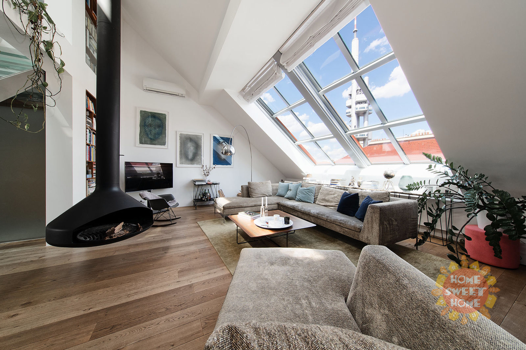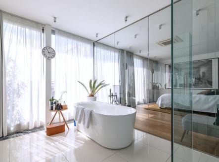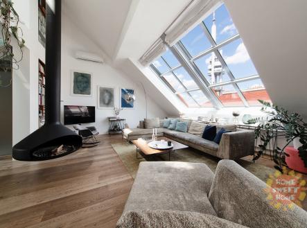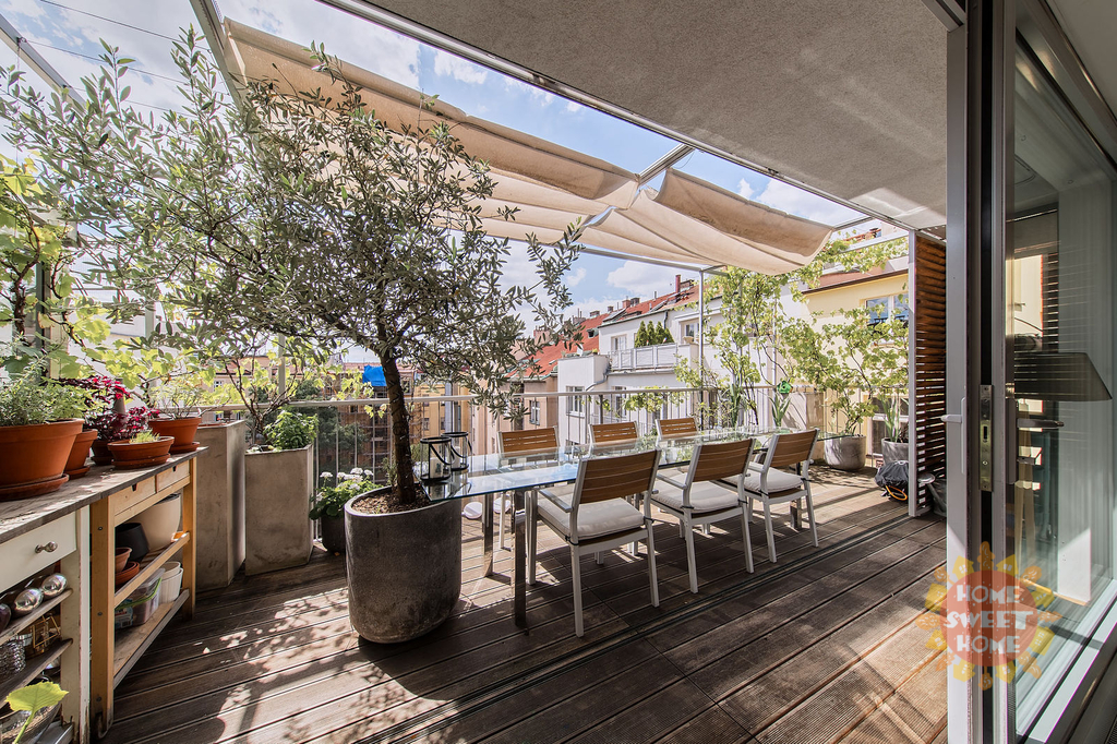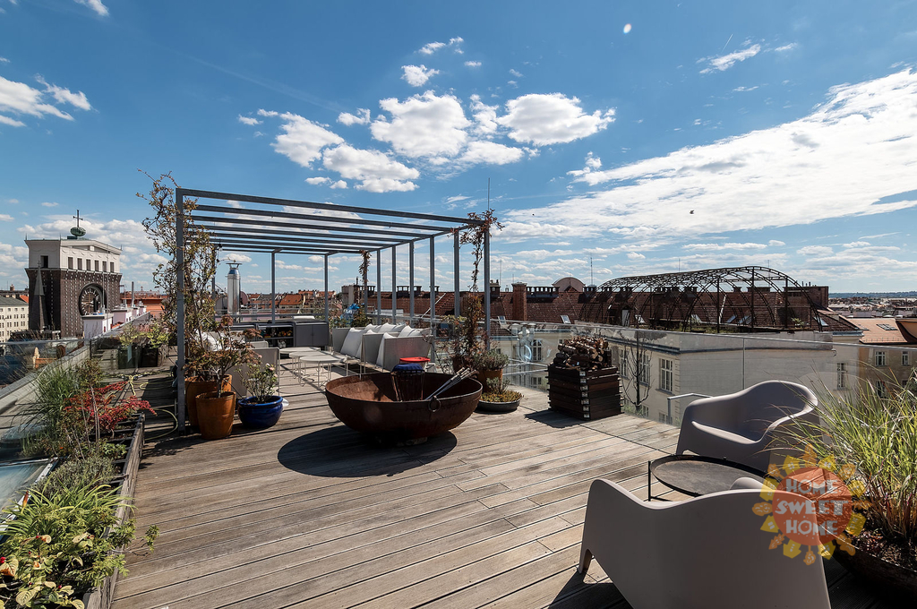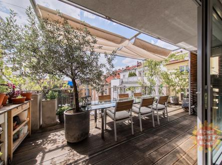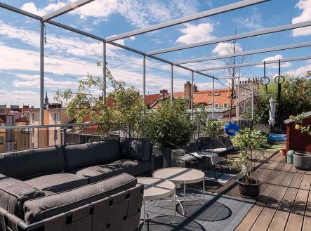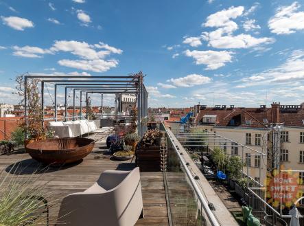 Praha, moderní nezařízený byt 4+kk (454 m2) k pronájmu, 3x terasa, parkování, Laubova ul.