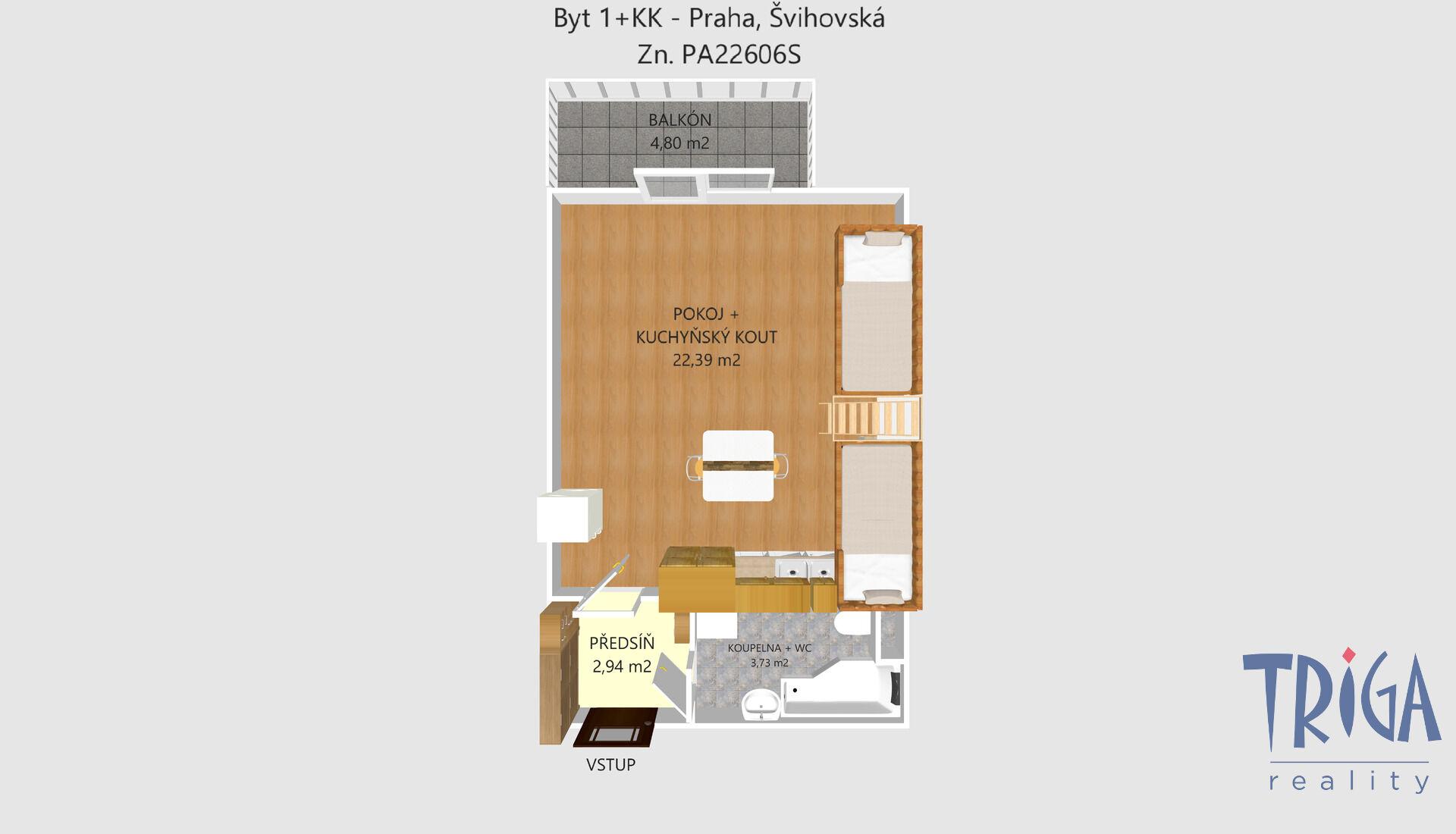 Nabízíme Vám k prodeji útulný byt 1+kk s balkónem v osobním vlastnictví, nacházející se v klidné části Prahy 4 – Libuš, Písnice, v blízkosti zastávek tramvaje i autobusu. Jedná se o bytovou výstavbu Nový Park Písnice. Byt je situován ve 4. nadzemním podlaží zděného bytového domu s výtahem, který byl kolaudován v roce 2011. Prostorově je velmi dobře řešen. Podlahová plocha bytu bez balkónu činí 29,2 m², plocha balkónu je 4,8 m². Dispozice: předsíň s vestavěnou skříní s úložným prostorem a botníkem (vyhotoveno na zakázku), koupelna s vanou, pračkou, umyvadlem a WC, obytný pokoj s kuchyňským koutem, vestavěným patrem na spaní a vstupem na prostorný balkón s výhledem do okolní zeleně. Vytápění bytu je ústřední, dálkové, včetně ohřevu vody. Okna jsou plastová se sítěmi proti hmyzu, podlahy plovoucí, v chodbě je stylová dlažba. Dům je zateplený, izolovaný, s moderním interiérem, v suterénu je k dispozici kolárna. V lokalitě je plánovaná dostavba metra linky D, nachází se zde mnoho cyklostezek a přírodních tras (Modřanská rokle, Davle, okolí Průhonic apod.). Parkování je možné v bezprostřední blízkosti domu. Dům má výborně fungující SVJ a nízké měsíční náklady na bydlení. Neváhejte a domluvte si v naší kanceláři prohlídku – rádi Vás nemovitostí osobně provedeme. Zak. č.: PA22606S | PENB: C